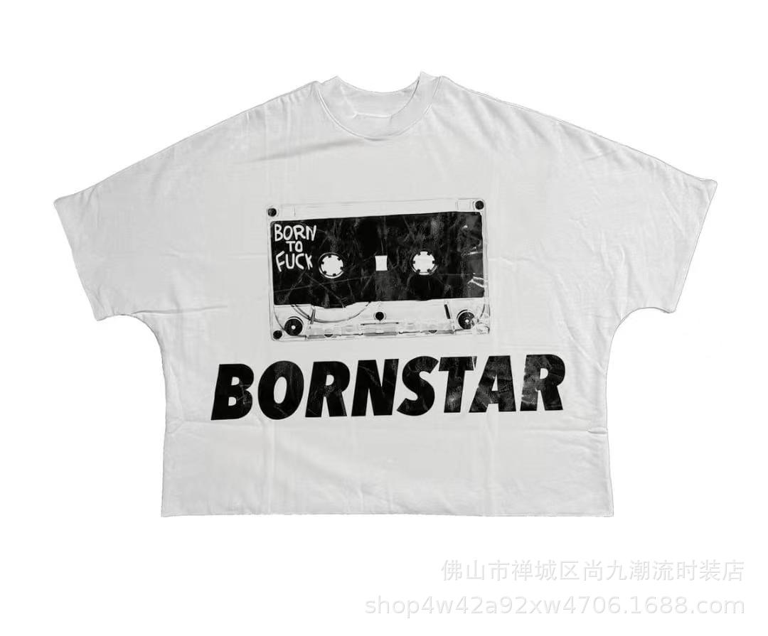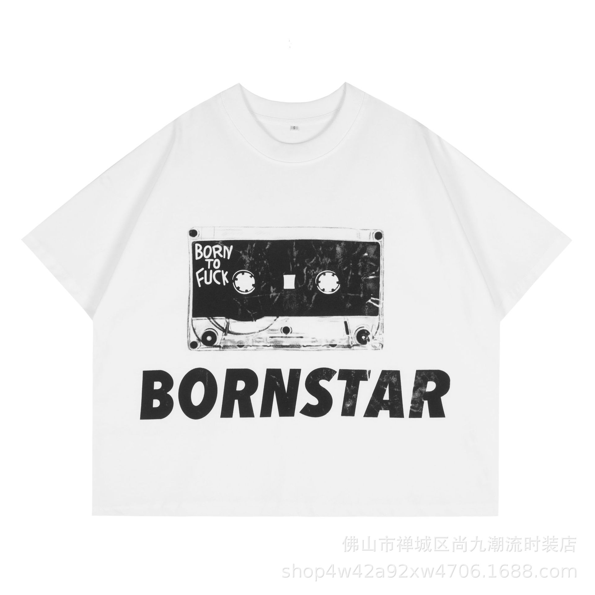 힙합 패션 브랜드 유럽과 미국의 하이 스트리트 만화 추상 인쇄 편지 플러스 사이즈 느슨한 남성과 여성의 커플 티셔츠 국경 간 공급스토어 가기