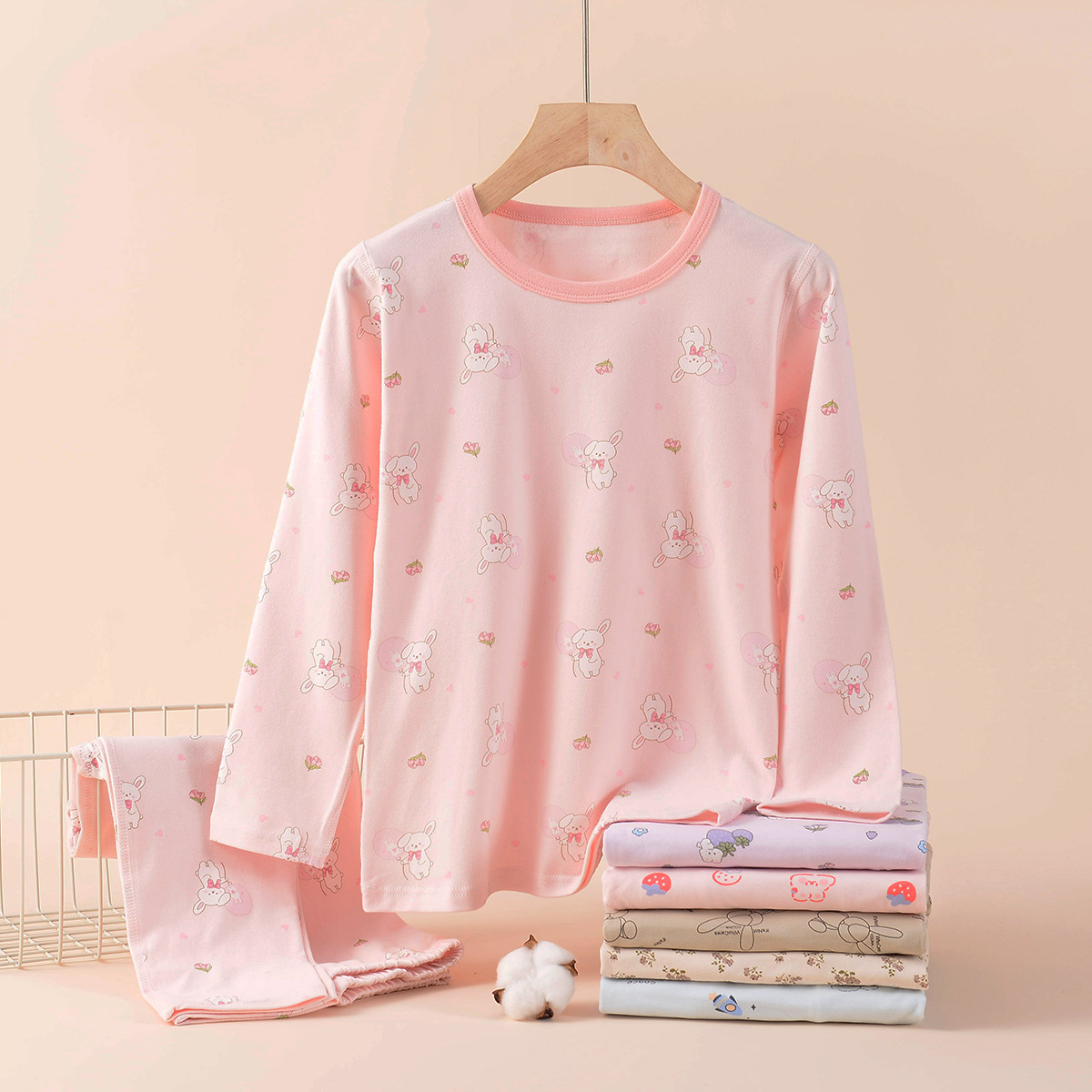 순면 속옷 세트, 코마사 라이크라 면 가을옷, 가을바지, 남아 여아 잠옷, 가을 겨울 아동 홈웨어, A급