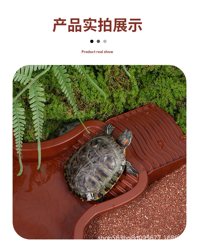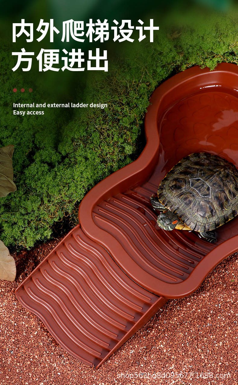 거북이 목욕 분지 토지 및 토지 사용 대형 등반 애완 동물 물 식품 분지 절반 물 거북이 노란색 가장자리 목욕 분지 일출식 등반 경사 냉각
