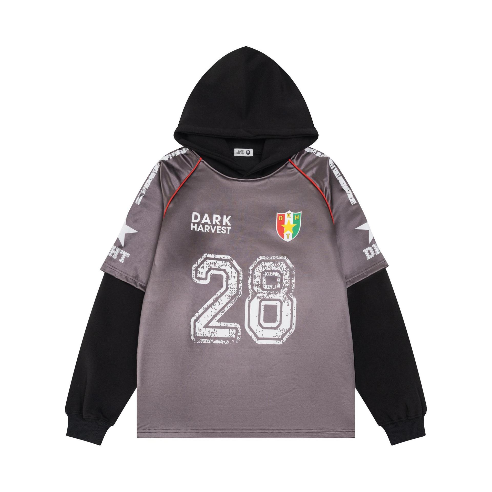 아메리칸 스타일 레트로 콘트라스트 컬러 더블 레이어 페이크 투피스 후드 스웨터 남성 전국 패션 루즈 하이 스트리트 스택 캐주얼 후디 재킷
