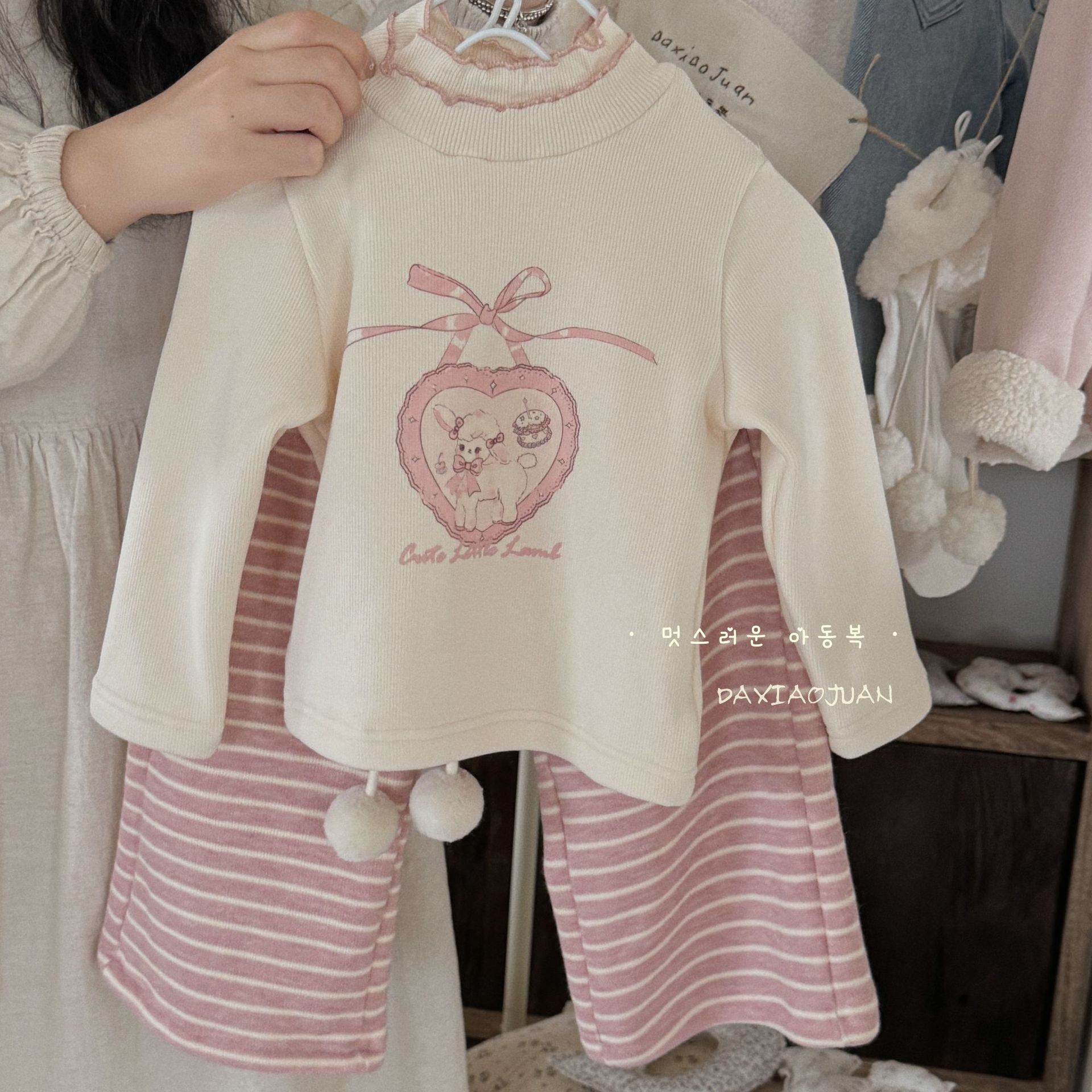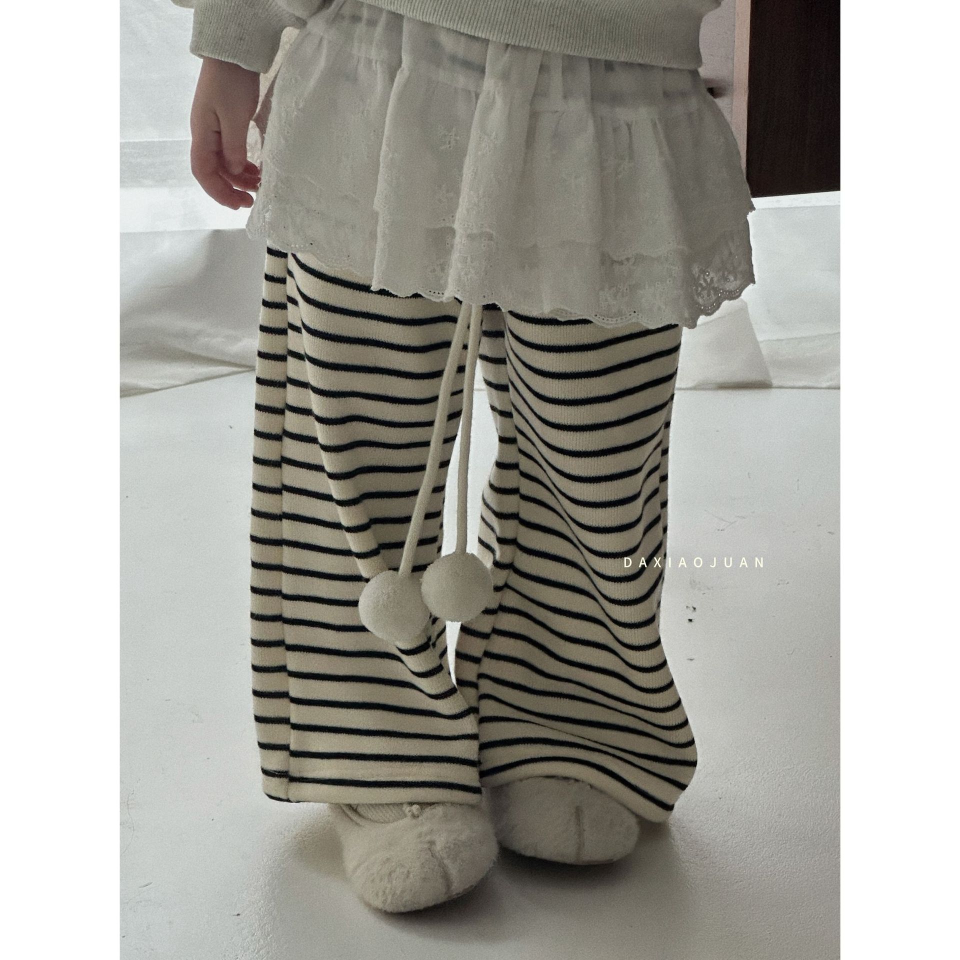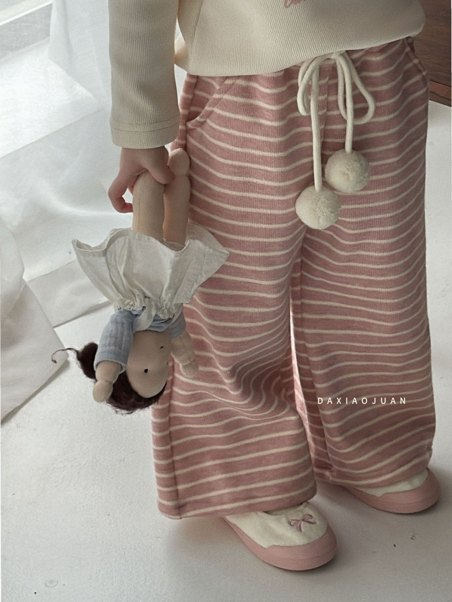 크기 볼륨 가을과 겨울 24 새로운 아동복 줄무늬 기모 캐주얼 바지 한국 외국 스타일-스트레이트 와이드 다리 바지 32361