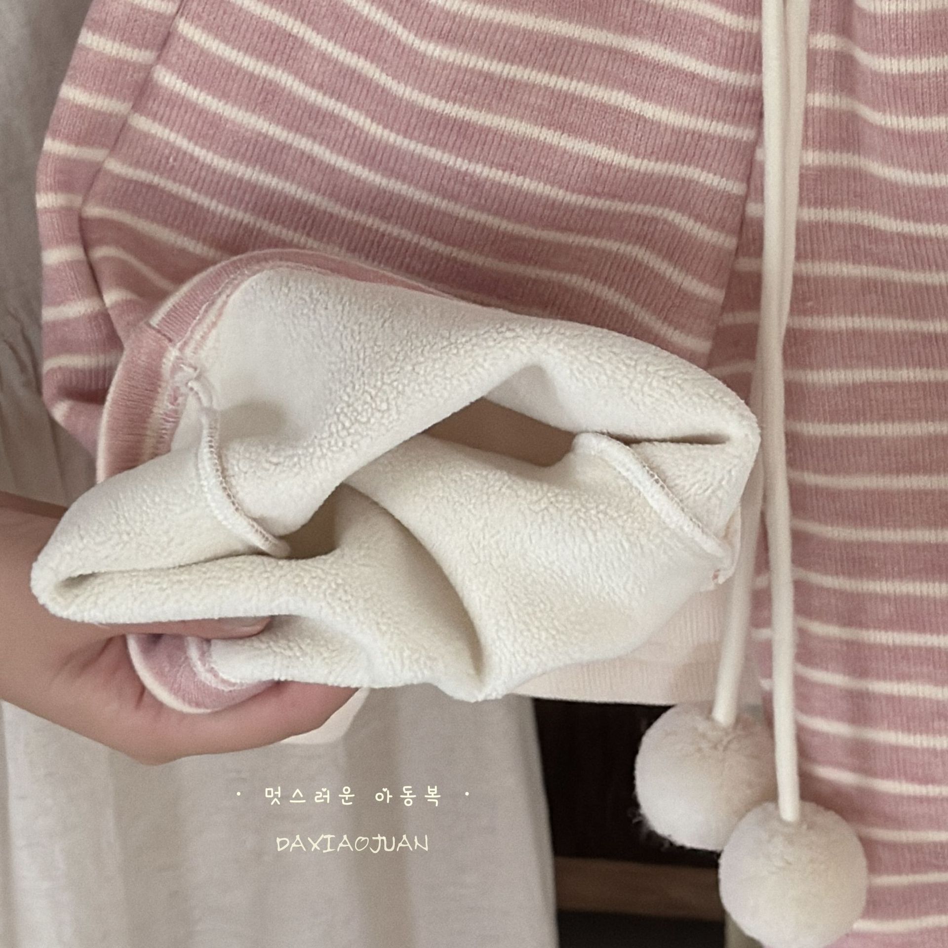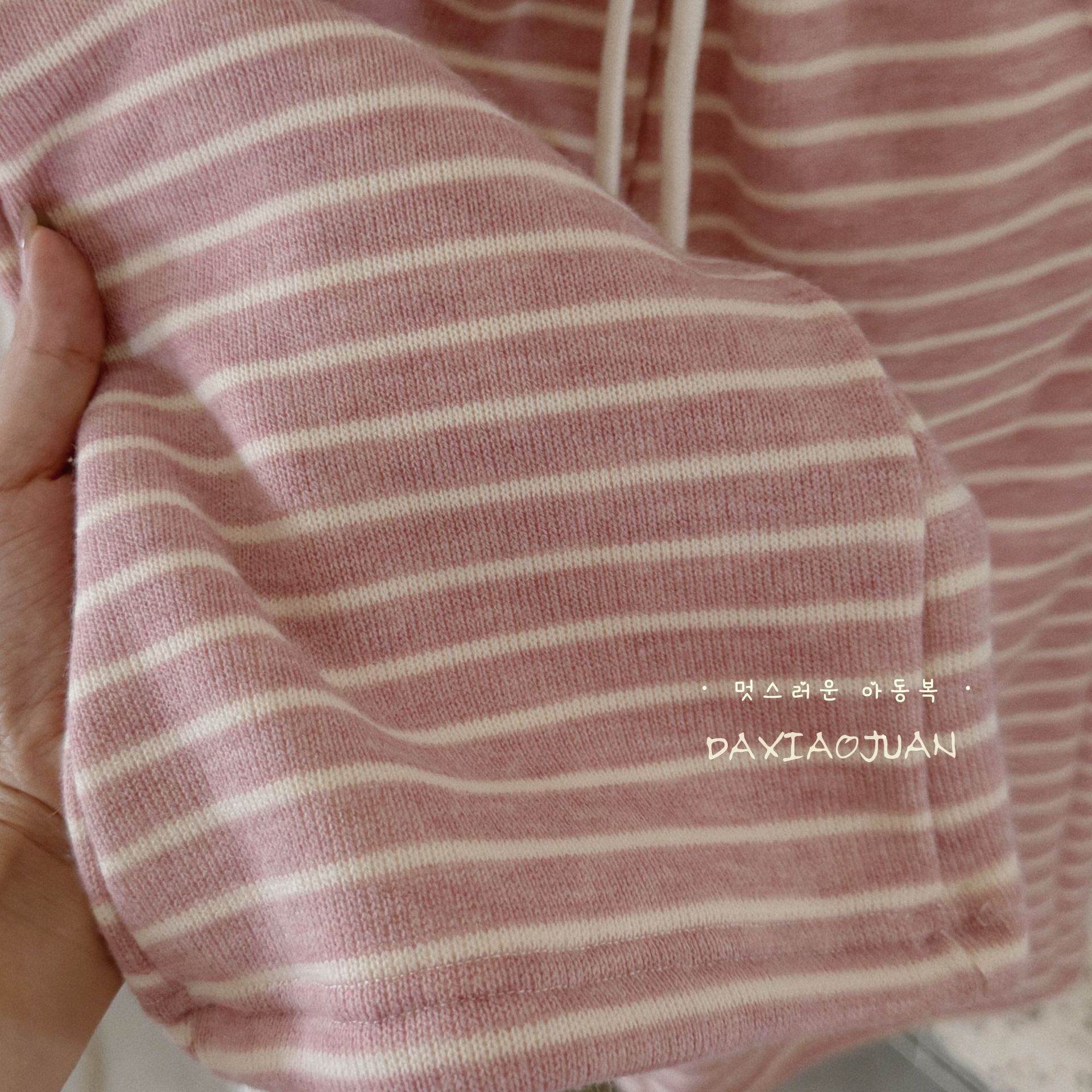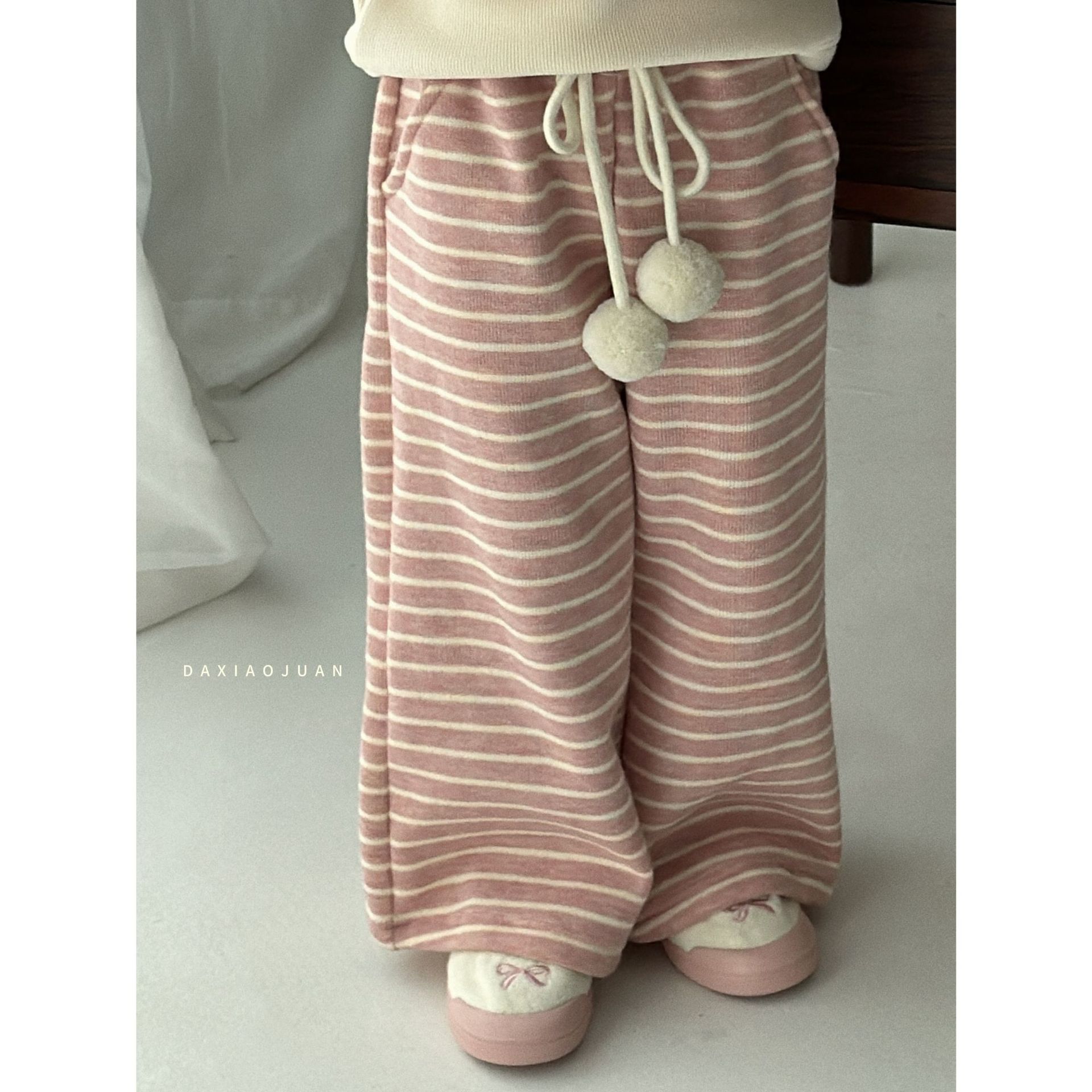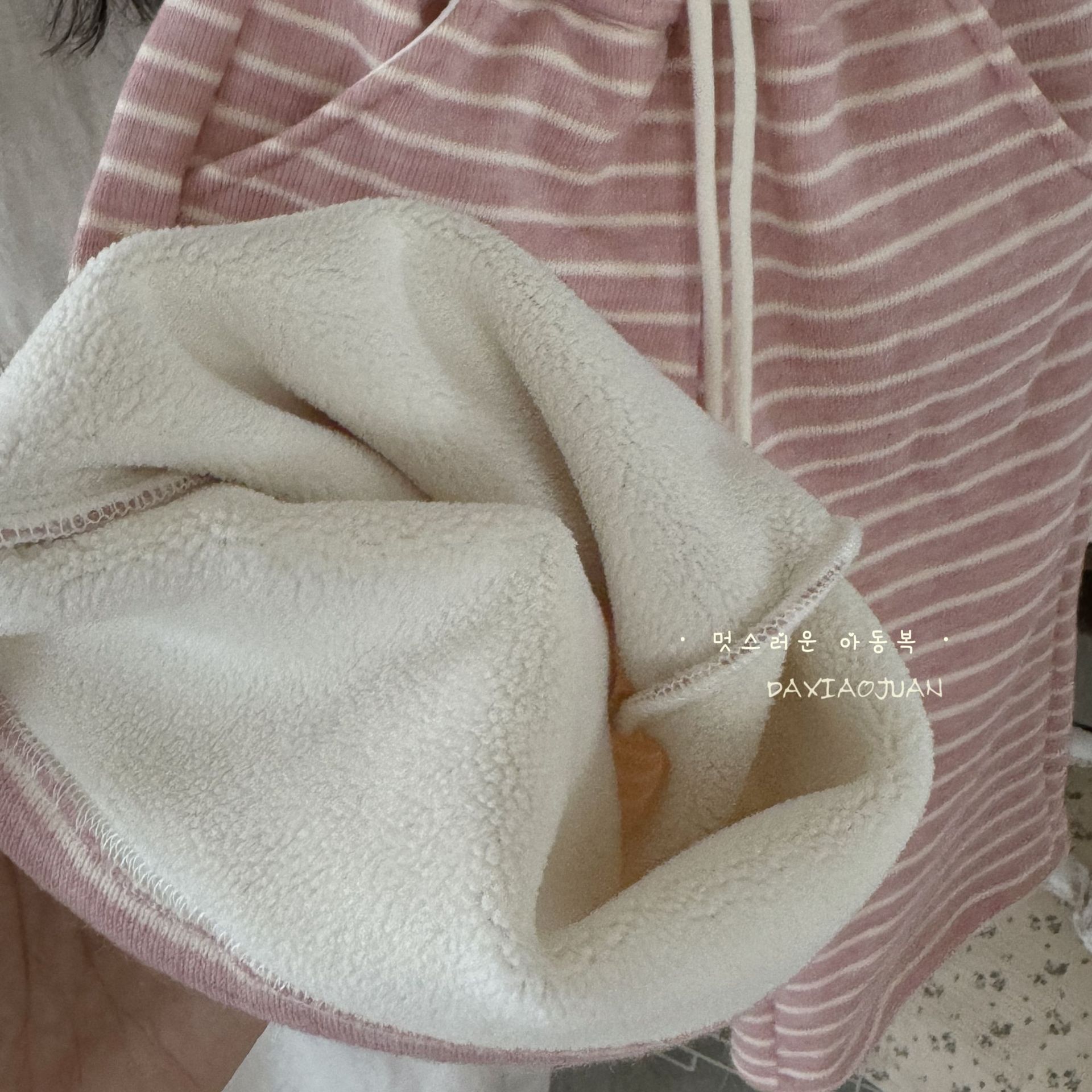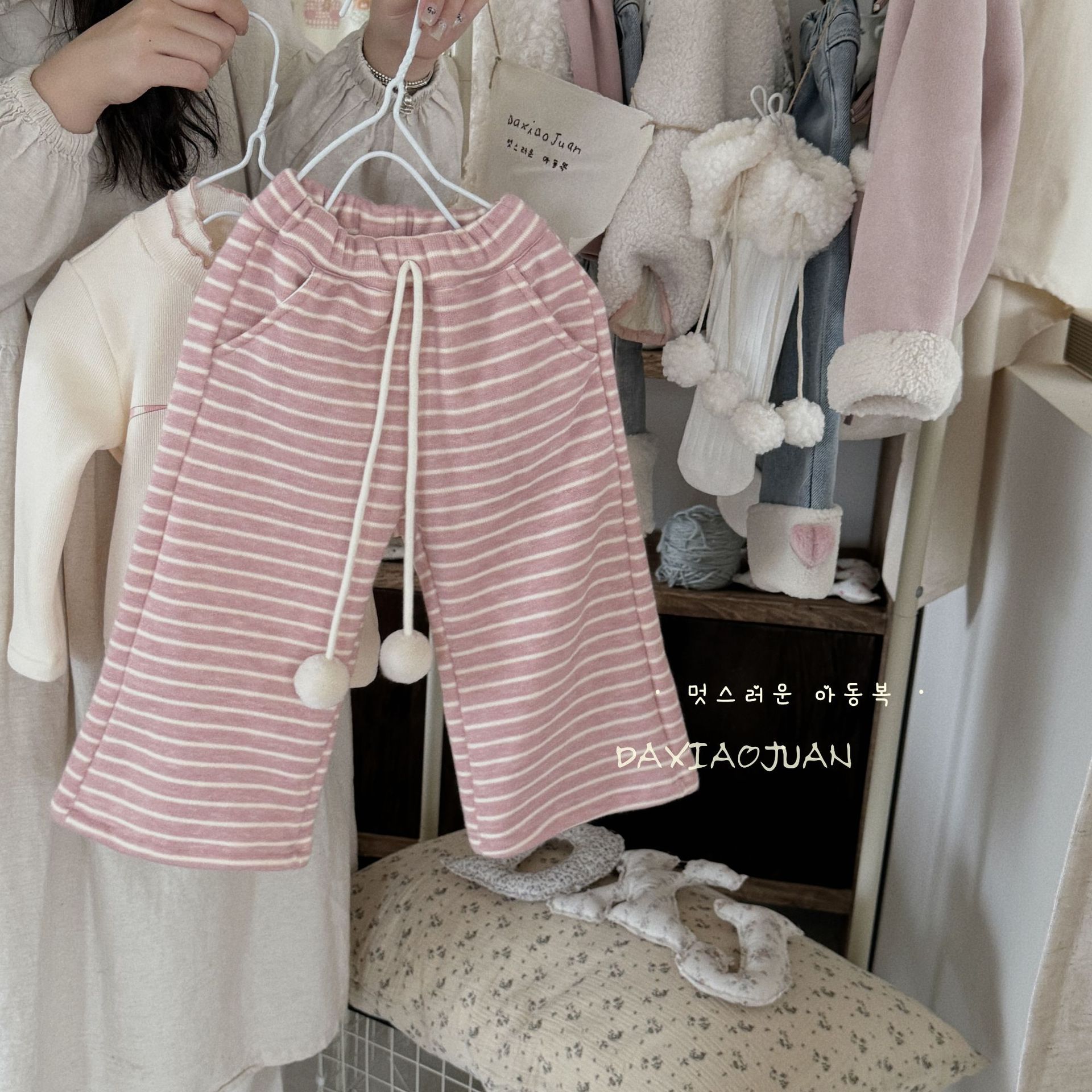 크기 볼륨 가을과 겨울 24 새로운 아동복 줄무늬 기모 캐주얼 바지 한국 외국 스타일-스트레이트 와이드 다리 바지 32361스토어 가기