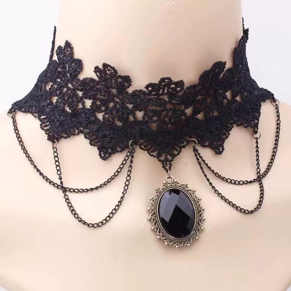 유럽과 미국의 복고풍 스타일 블랙 레이스 밝은 다이아몬드 여성 목걸이 대외 무역 보석 성격 조커 쇄골 체인 도매 Y473스토어 가기