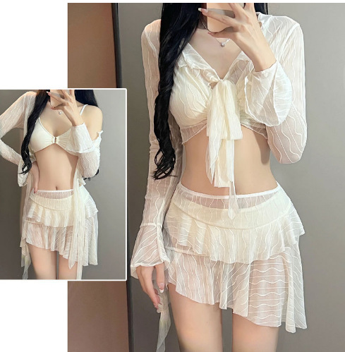 비키니 수영복 여성 2024 새 4 피스 세트 고급 화이트 섹시 스플릿 수영복 슬리밍 홀리데이 온천스토어 가기