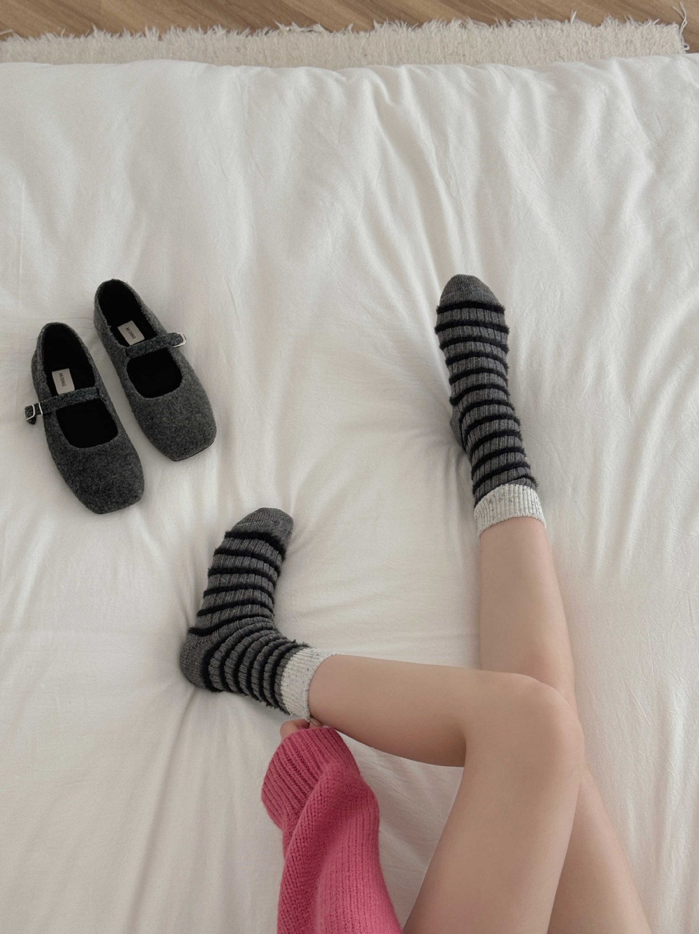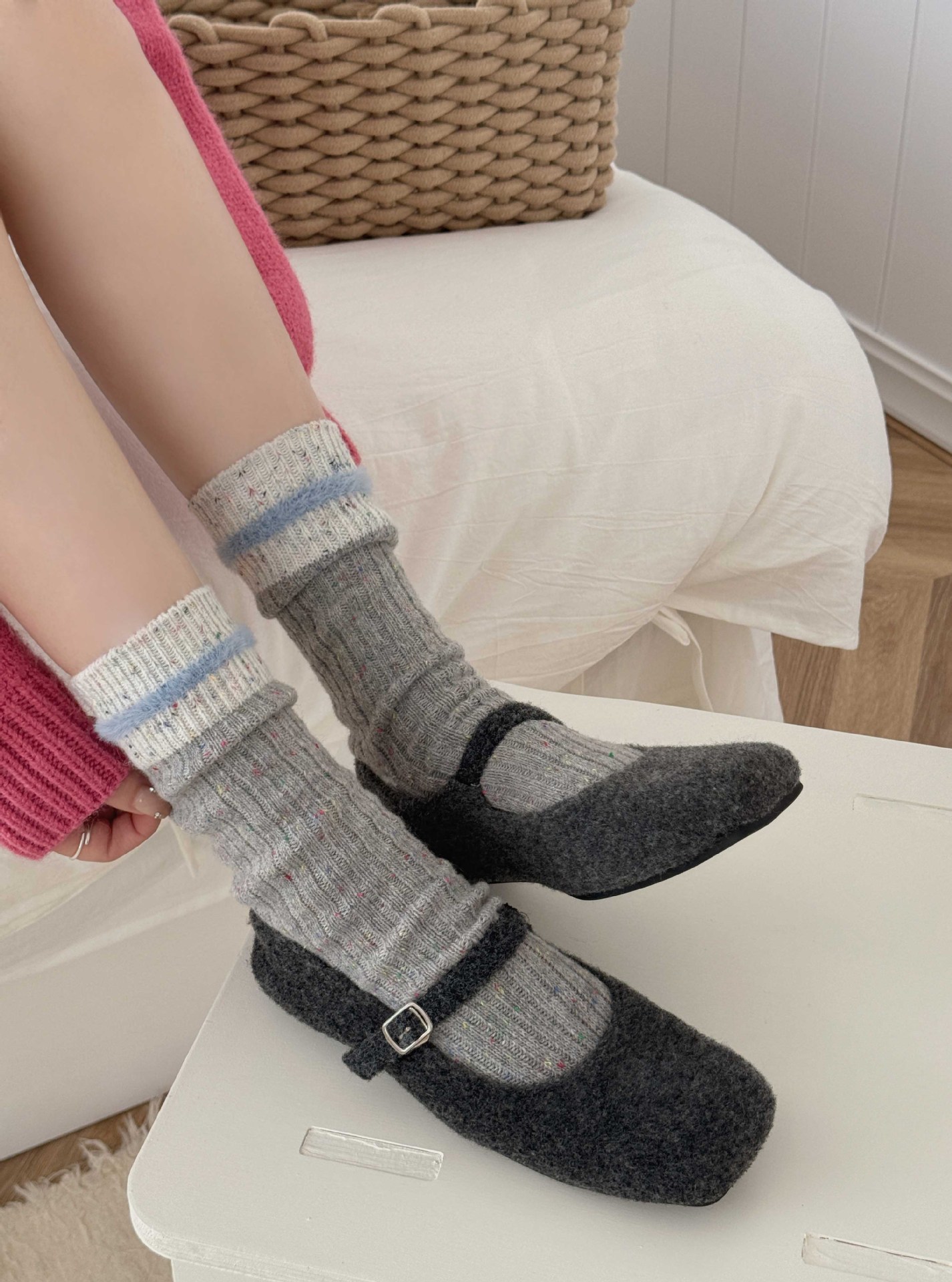 양말 여자의 두꺼운 따뜻한 한국 스타일 Ins 대조 물 마오 마오 포인트 원사 러프 라인 여성 양말 중견 포장 양말스토어 가기