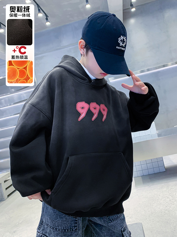소년의 땀 겨울 통합 기모 2024 년 새로운 큰 어린이 겨울 옷 어린이 따뜻한 후드 탑