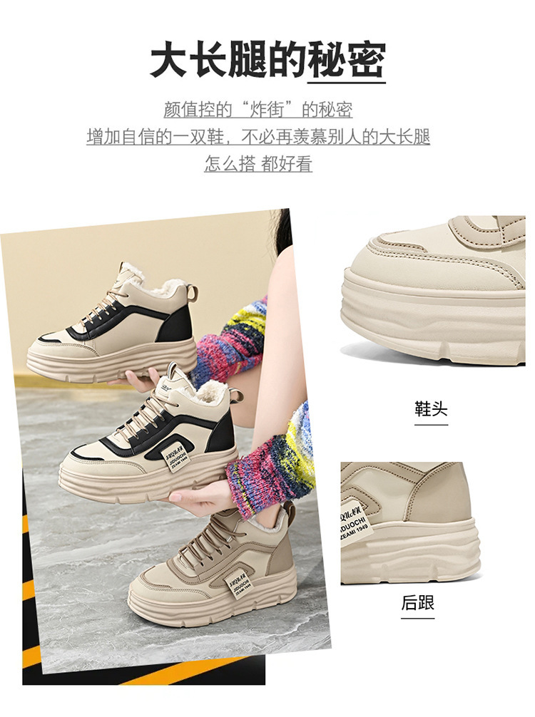 W3630 내부 높이 여성 신발 2024 겨울 새 기모 면화 따뜻한 학생 보드 신발 한국 플랫폼 신발 캐주얼스토어 가기