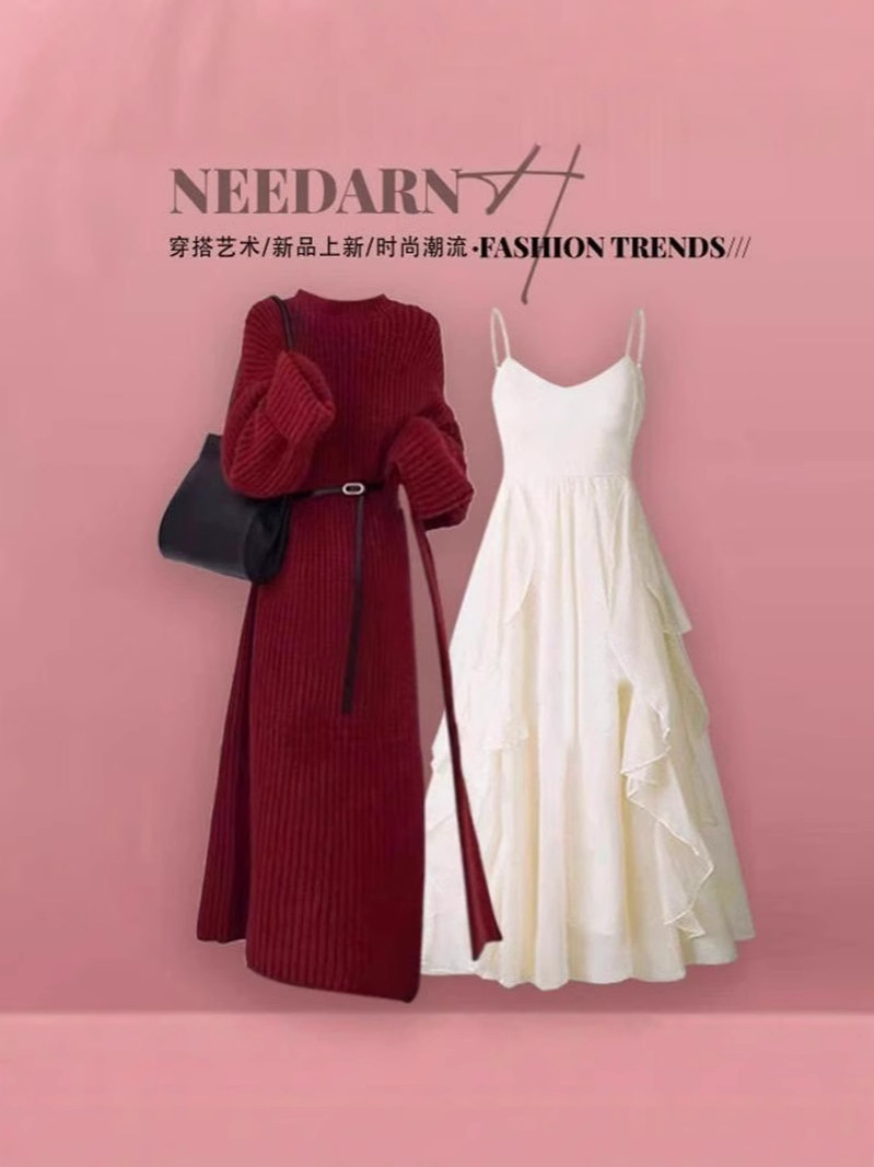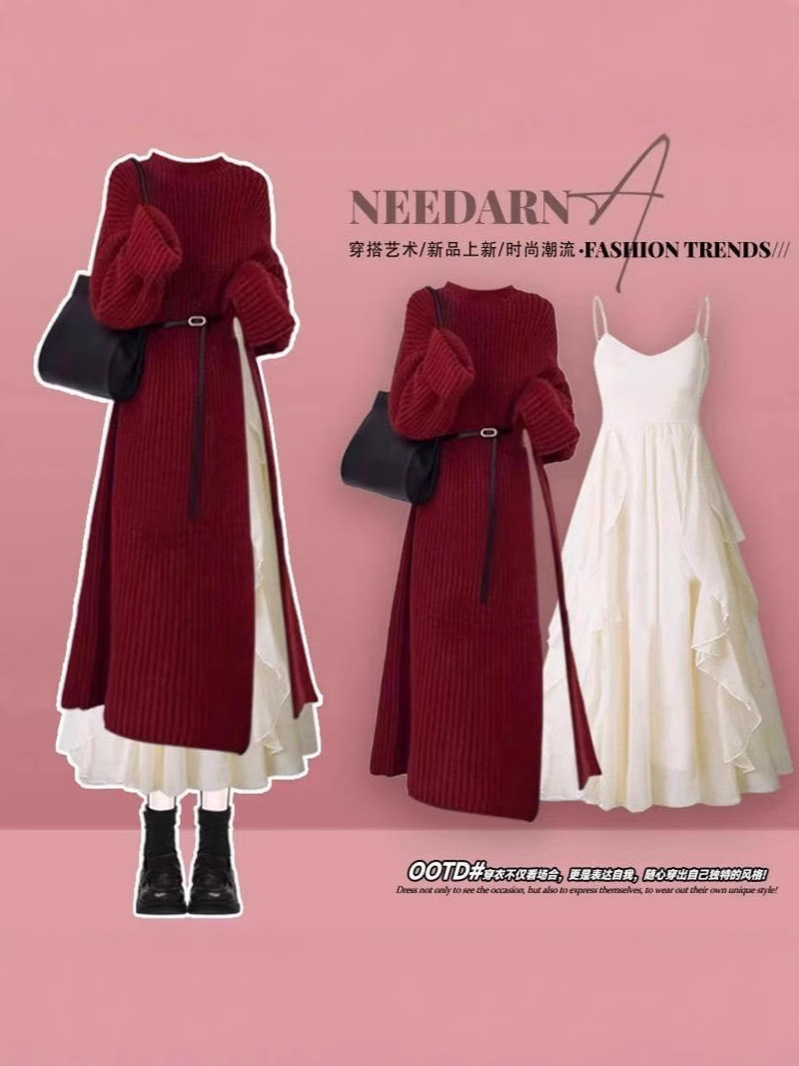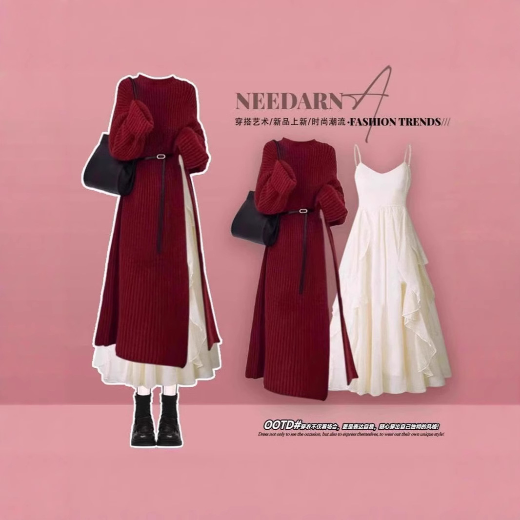 프랑스 원피스 여성 2024 새로운 작은 니트 스웨터 세트 긴 치마 세트가있는 가을과 겨울 옷스토어 가기