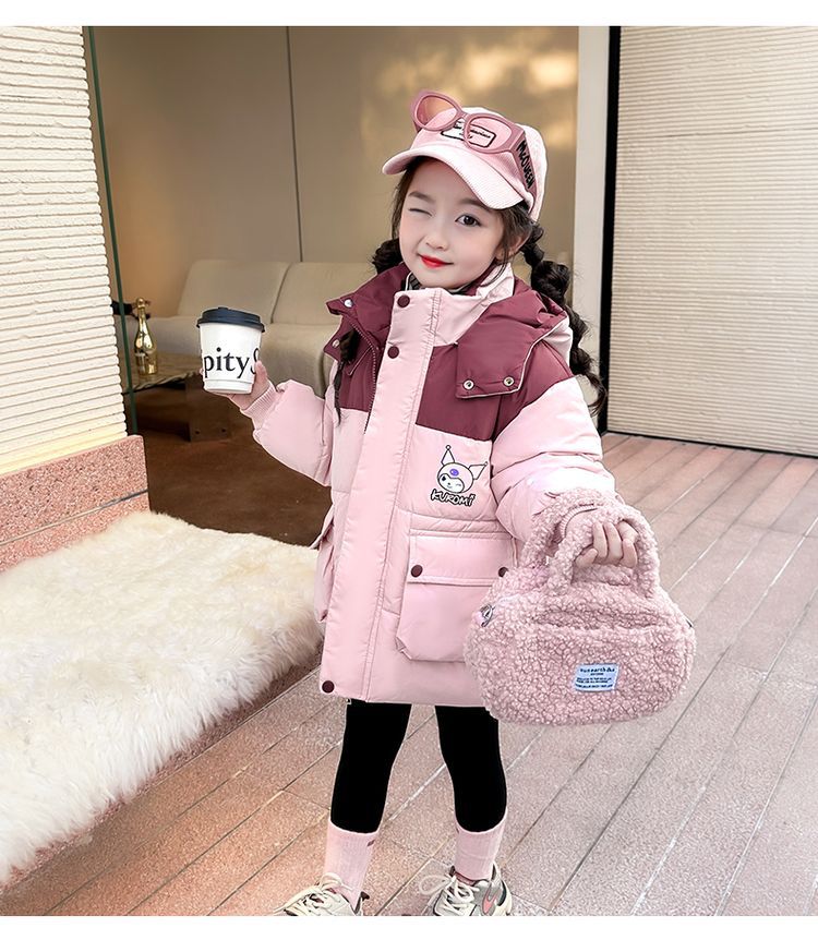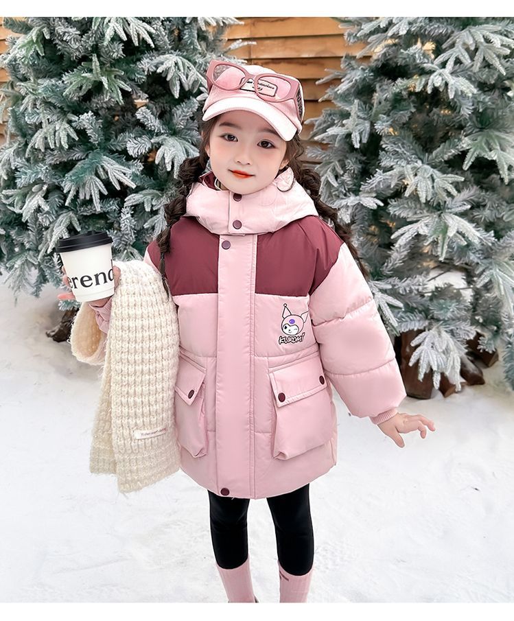 소녀 Kulomi Coat 2024 겨울 기모 두꺼운 새 방풍 외부 여성 아기 폭발 중간 두께 면 코트스토어 가기