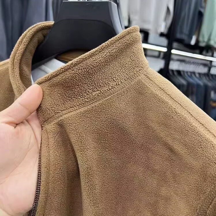 국경 양털 옷 남성 양면 폴라 양털 솔리드 컬러 카디건 스웨트 셔츠 남성 기모 따뜻한 캐주얼 워크 칼라 재킷
