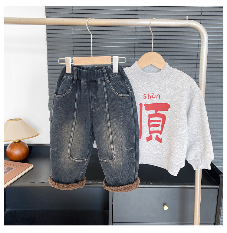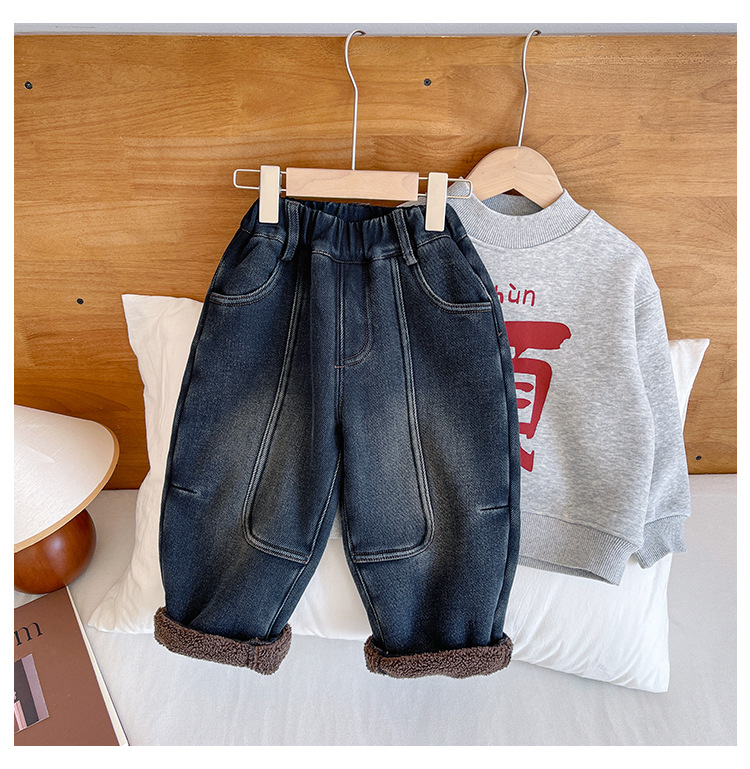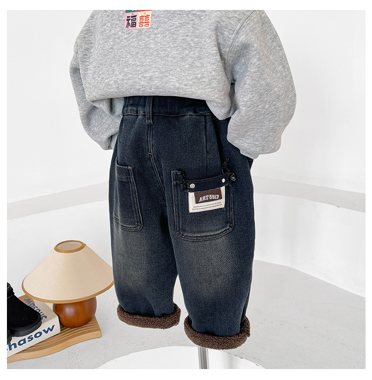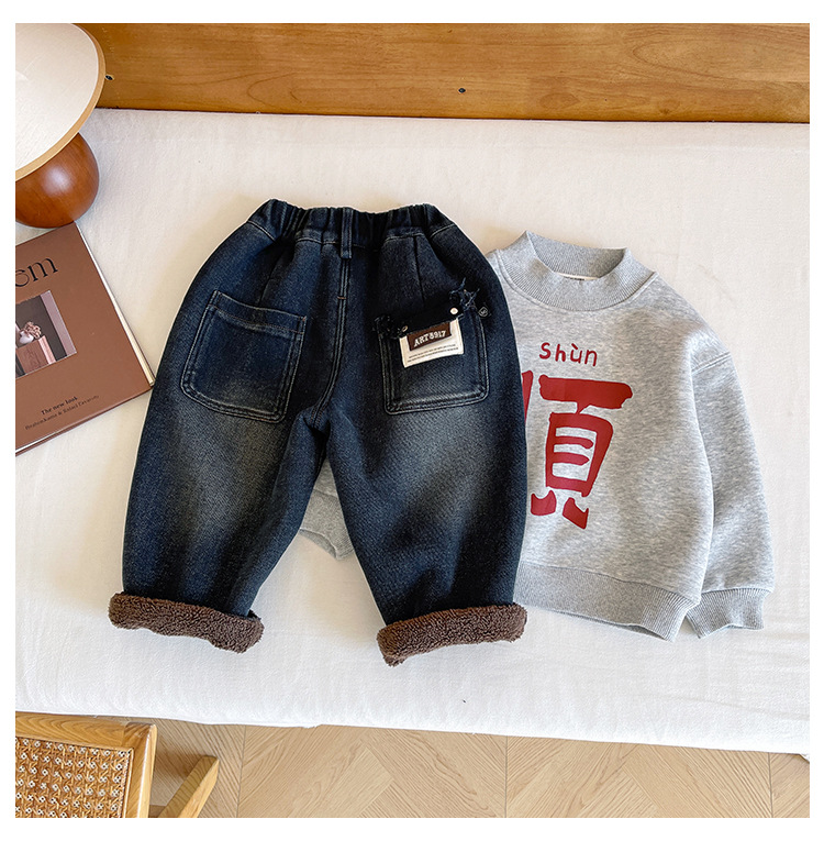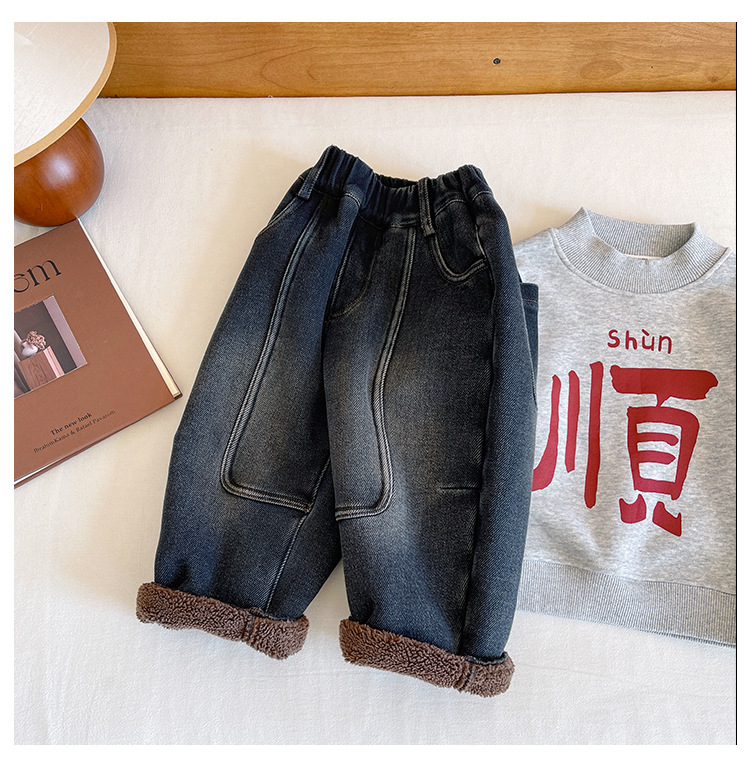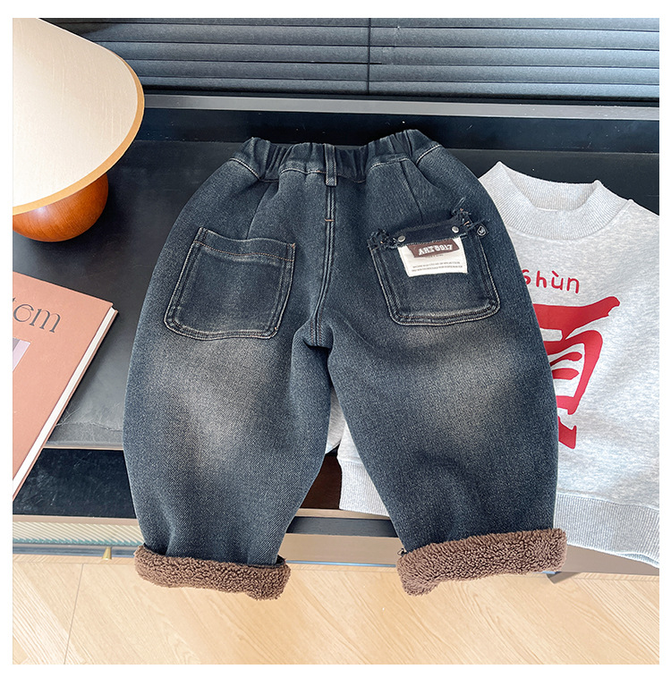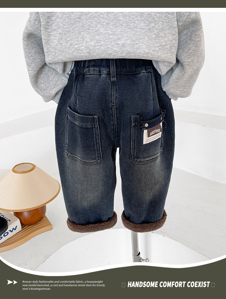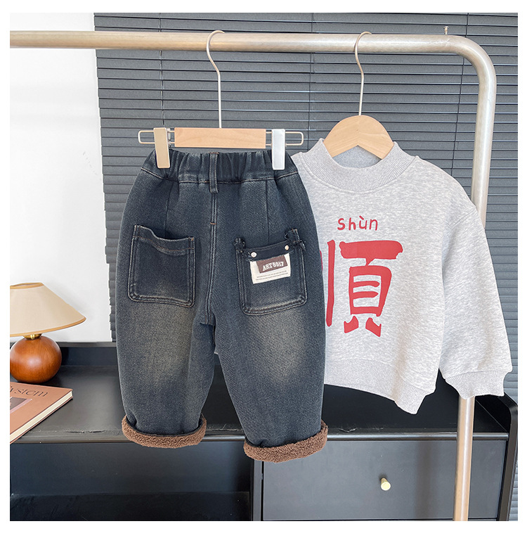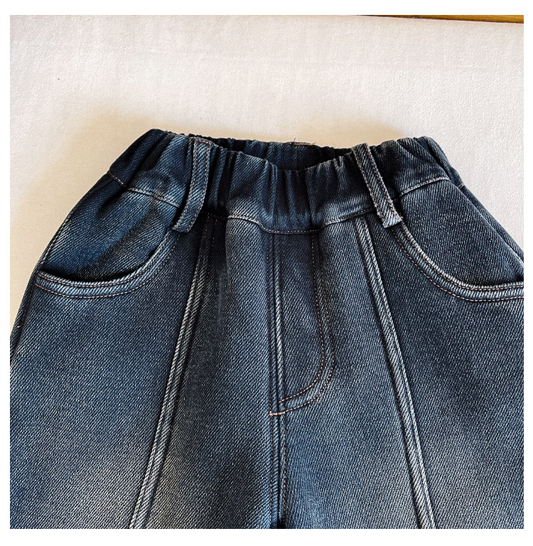 윈드 밸리 2024 겨울 새 어린이 바지 어린이 기모 두꺼운 청바지 소년 올매치 라벨링 그라디언트 바지스토어 가기