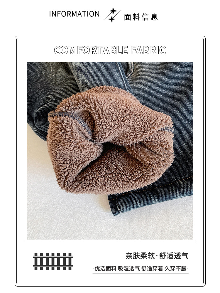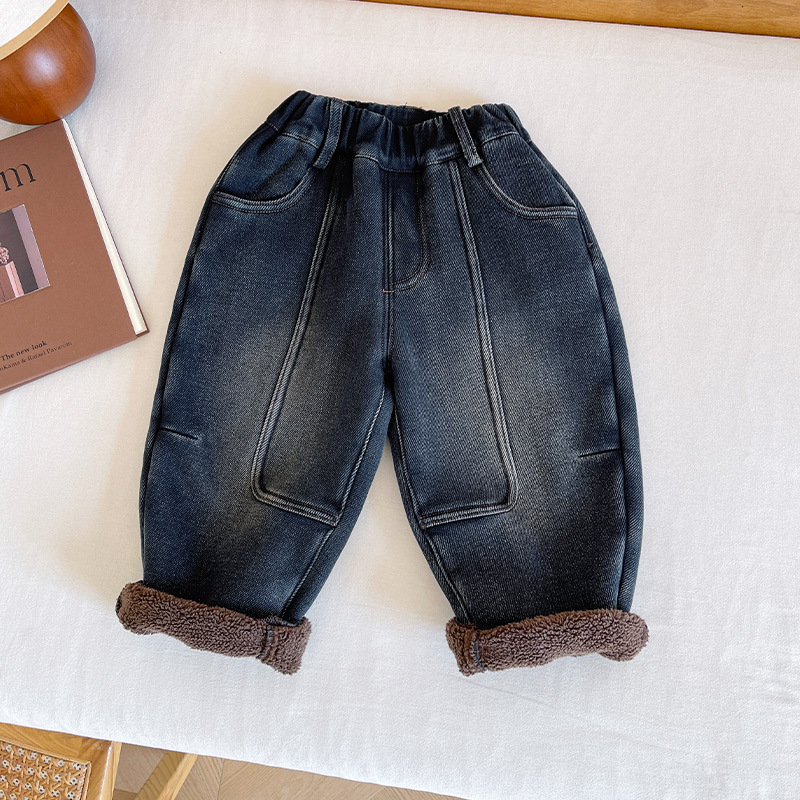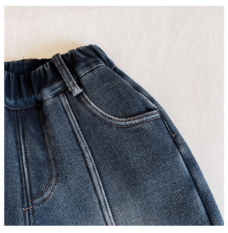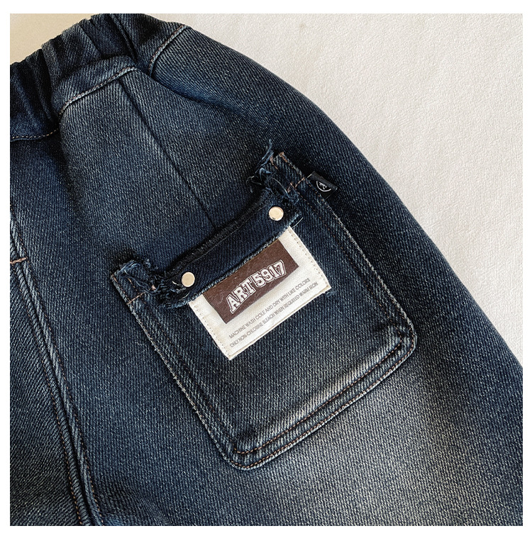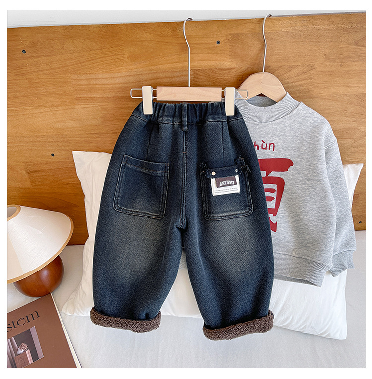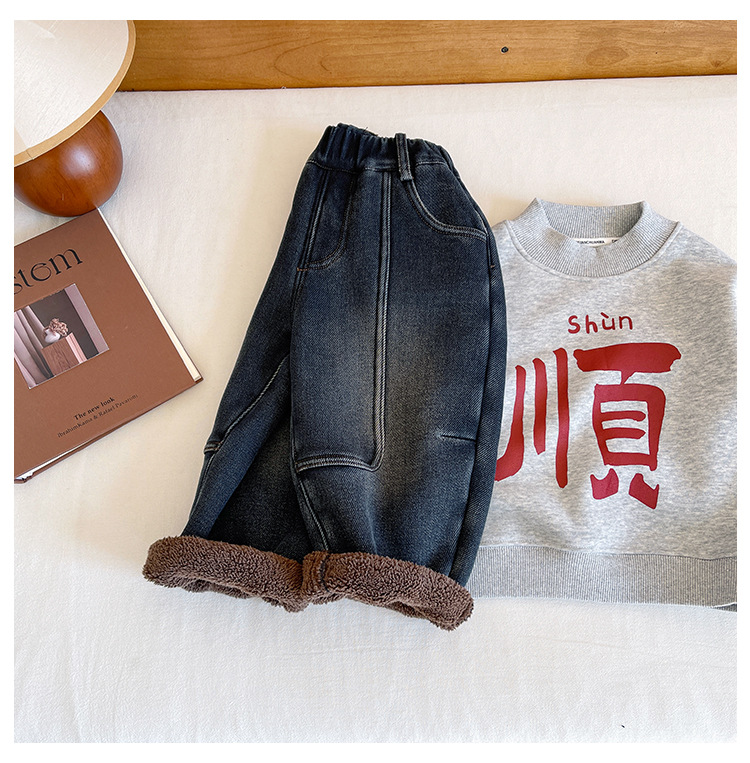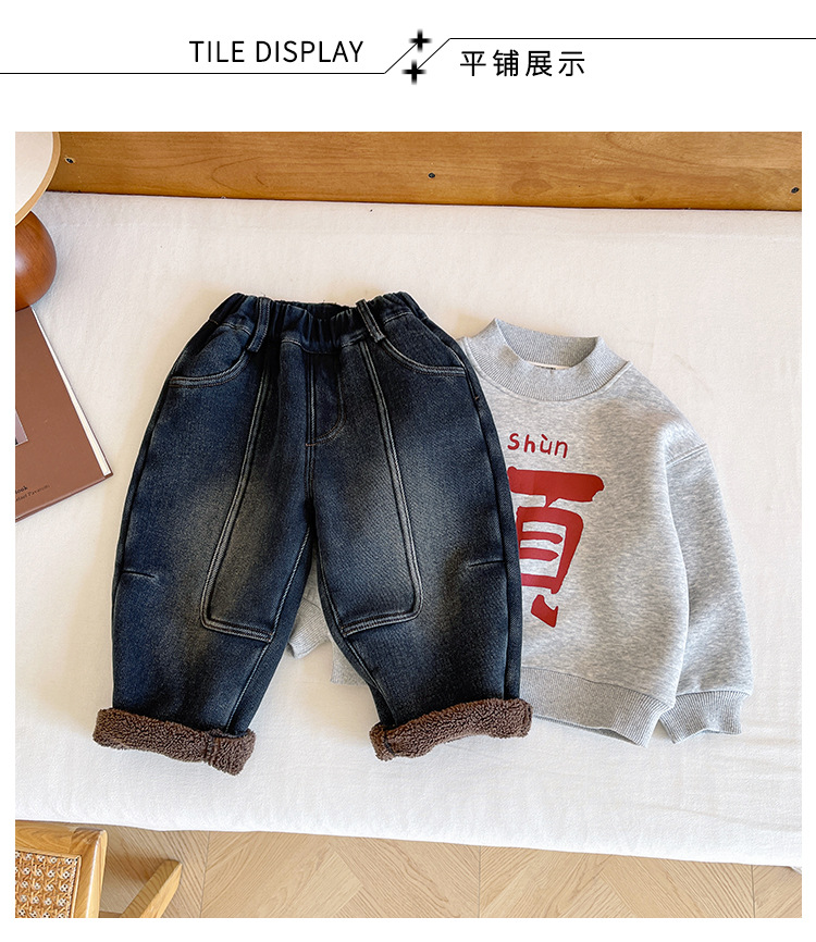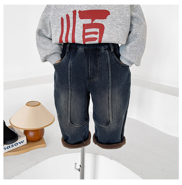 윈드 밸리 2024 겨울 새 어린이 바지 어린이 기모 두꺼운 청바지 소년 올매치 라벨링 그라디언트 바지스토어 가기
