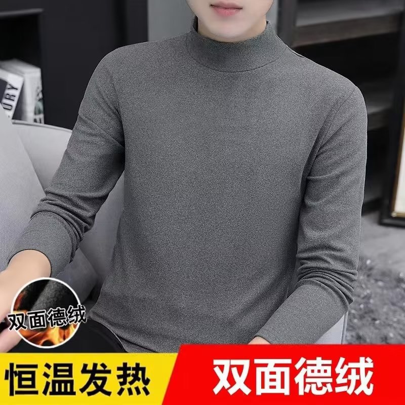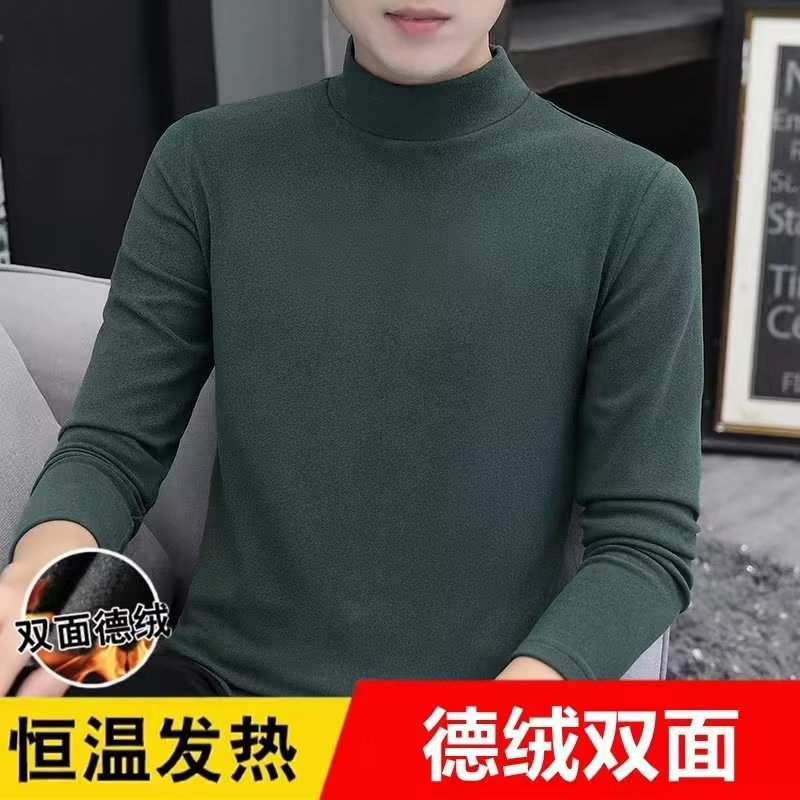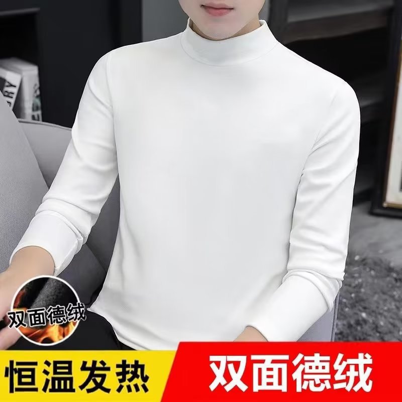 De Rong 따뜻한베이스 셔츠 남성용 긴팔 티셔츠 가을과 겨울 중고 칼라탑, 커플용 기모 내열 속옷