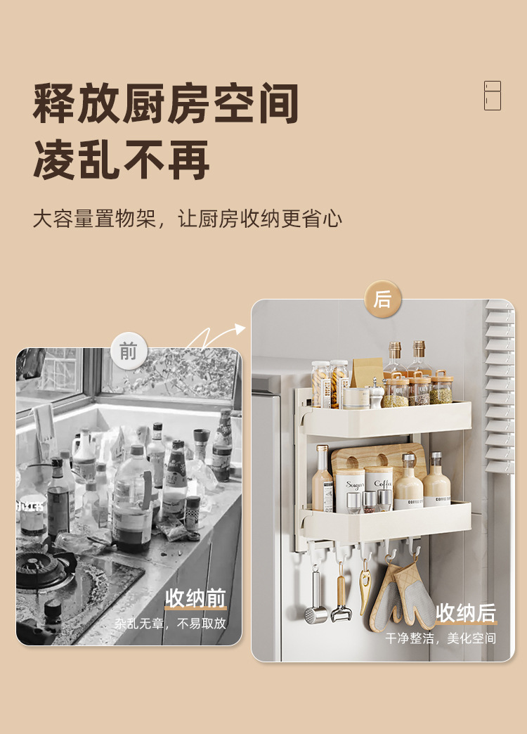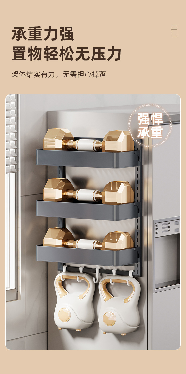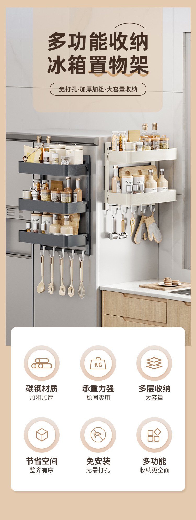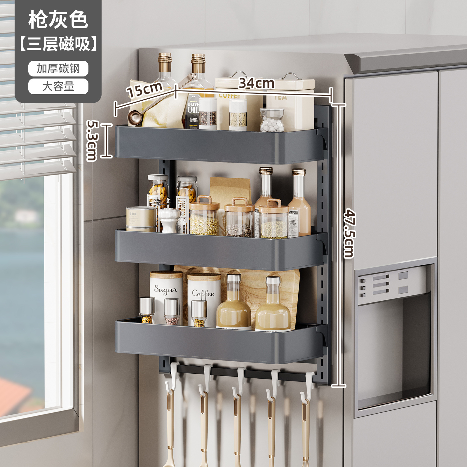 새로운 간단한 자석 흡입 냉장고 옷걸이 사이드 스토리지 주방 양념 병 다기능 스토리지 랙 벽 교수형 펀치 프리스토어 가기