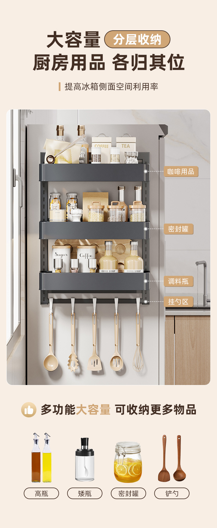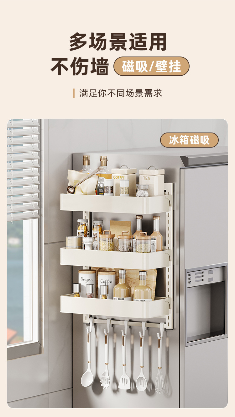 새로운 간단한 자석 흡입 냉장고 옷걸이 사이드 스토리지 주방 양념 병 다기능 스토리지 랙 벽 교수형 펀치 프리