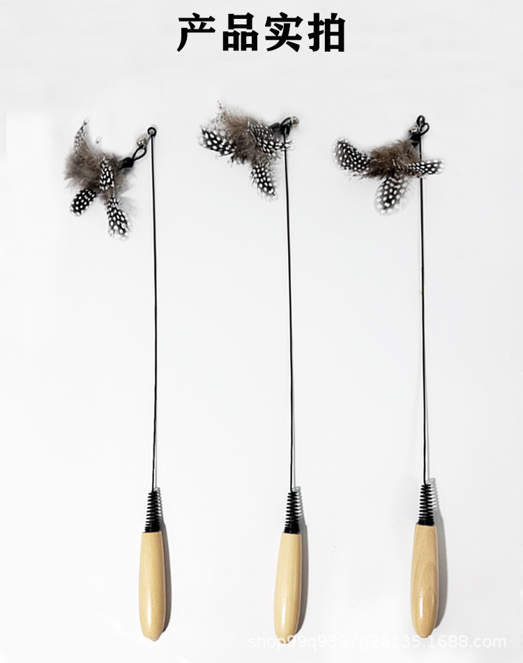 CFA 클래스 나무 손잡이 고양이 스틱 나무 손잡이 고양이 스틱 대화 형 고양이 장난감 교체 가능한 깃털 내구성 강철 와이어