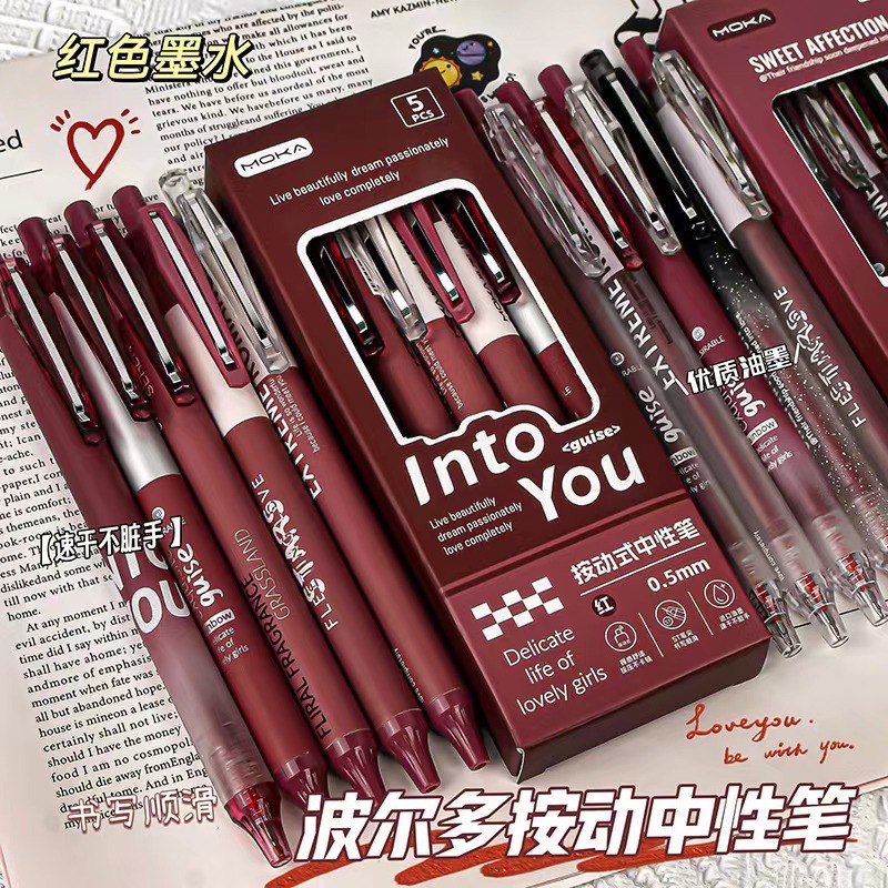 보르도 레드 펜 레드 젤 펜 학생들은 푸시 형 교사의 두꺼운 머리를 사용하여 숙제 빠른 건조 펜 높은 색상 값을 수정합니다.스토어 가기