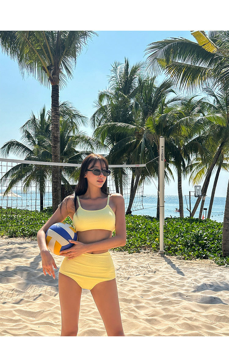 소스 공장 솔리드 컬러 화이트 하이 허리 타이트 슬림 스트랩 개더 보수적 인 소녀 스파 휴일 분할 수영복
