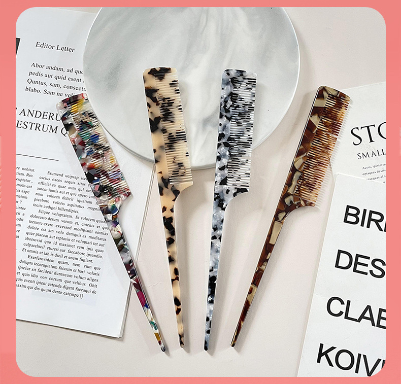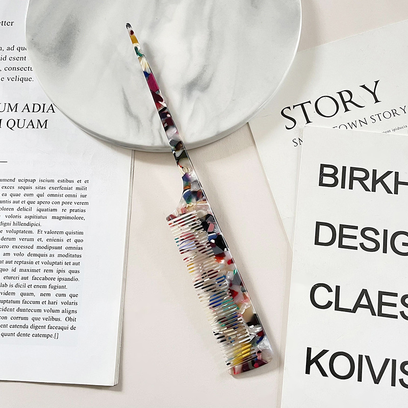 정전기 방지 긴 손잡이 빗 도파민 아세트산 플레이트 빗 가정용 휴대용 레트로 여성 스타일 헤어 빗