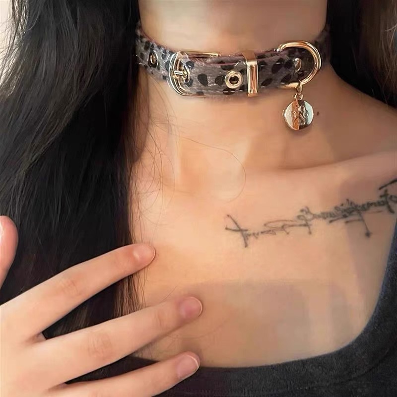 Y2K 달콤한 쿨 스파이스 소녀 핑크 얼룩말 레오파드 무늬 칼라 틈새 성격 펑크 넥 스트랩 목걸이 초커 쇄골 체인