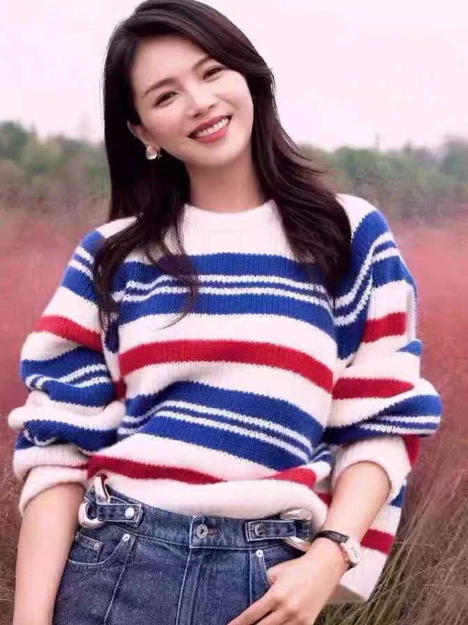 가을과 겨울 새로운 줄무늬 크루 넥 스웨터 여성의 느슨한 두꺼운 유럽 스웨터 대비 게으른 스타일 니트 베이스 셔츠스토어 가기