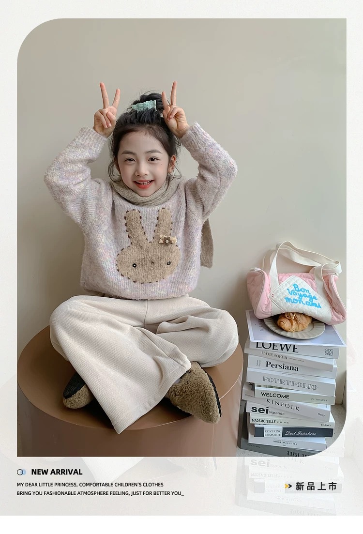 소녀 스웨터 2024 가을과 겨울 새로운 서양식 베이비 풀오버 탑 두꺼운 니트 스웨터 겨울 아동베이스 셔츠