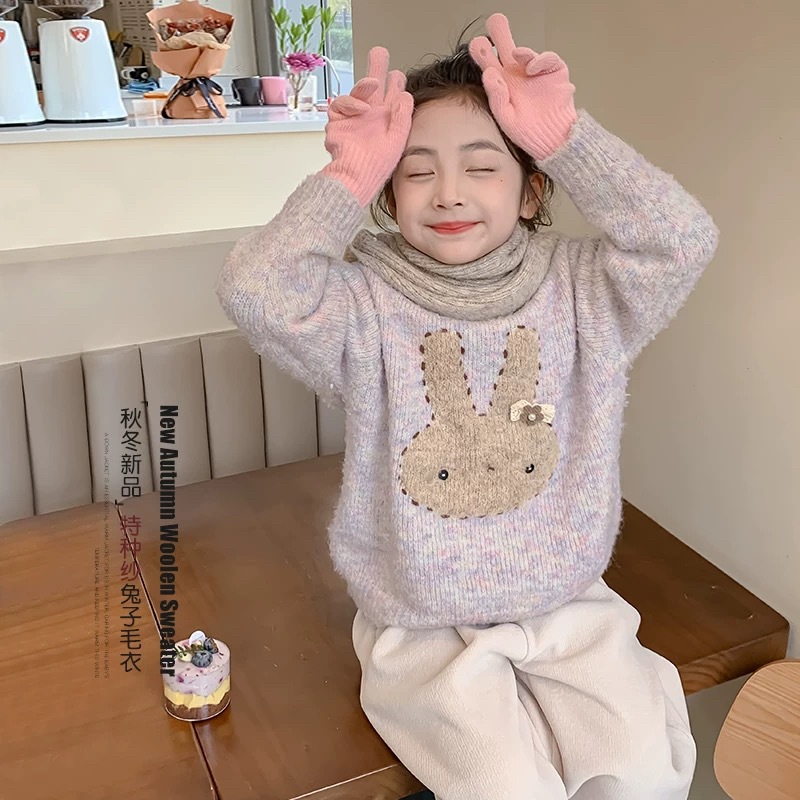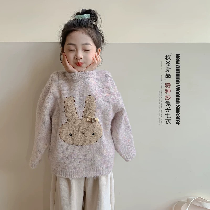 소녀 스웨터 2024 가을과 겨울 새로운 서양식 베이비 풀오버 탑 두꺼운 니트 스웨터 겨울 아동베이스 셔츠스토어 가기