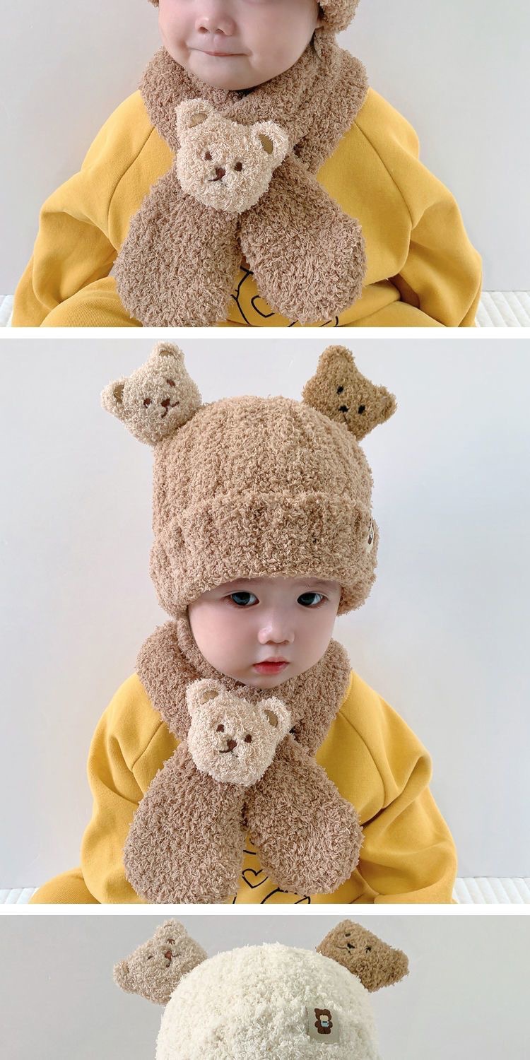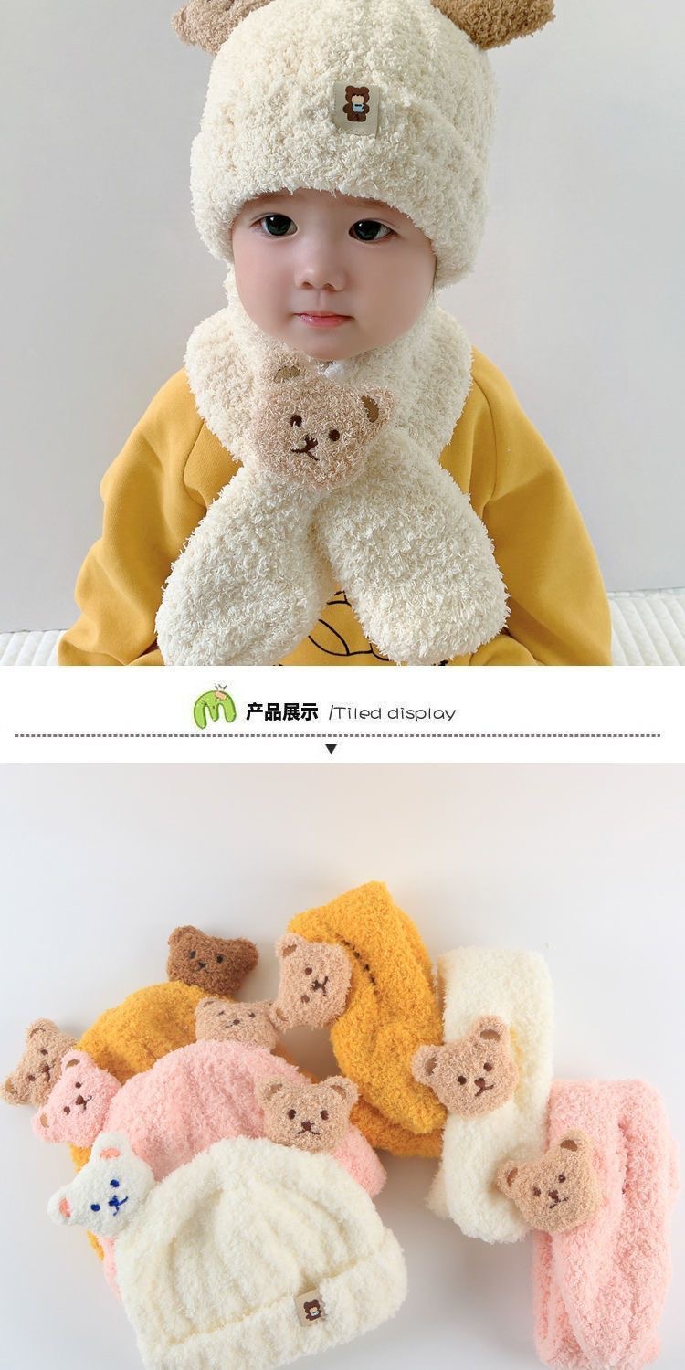 곰 봉제 아기 모자 가을과 겨울 아기 모자 스카프 원피스 투피스 어린이 따뜻한 귀 보호 캡 슈퍼 귀여운