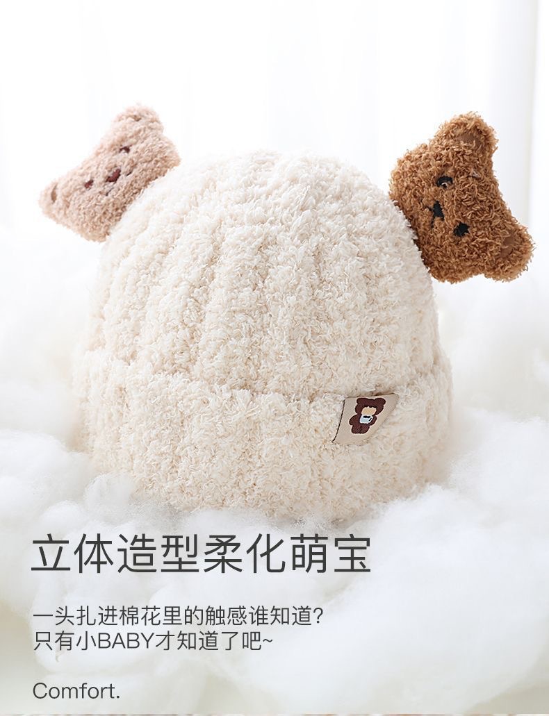 곰 봉제 아기 모자 가을과 겨울 아기 모자 스카프 원피스 투피스 어린이 따뜻한 귀 보호 캡 슈퍼 귀여운스토어 가기