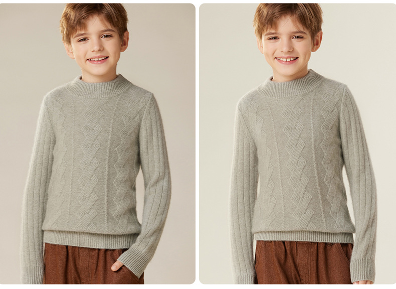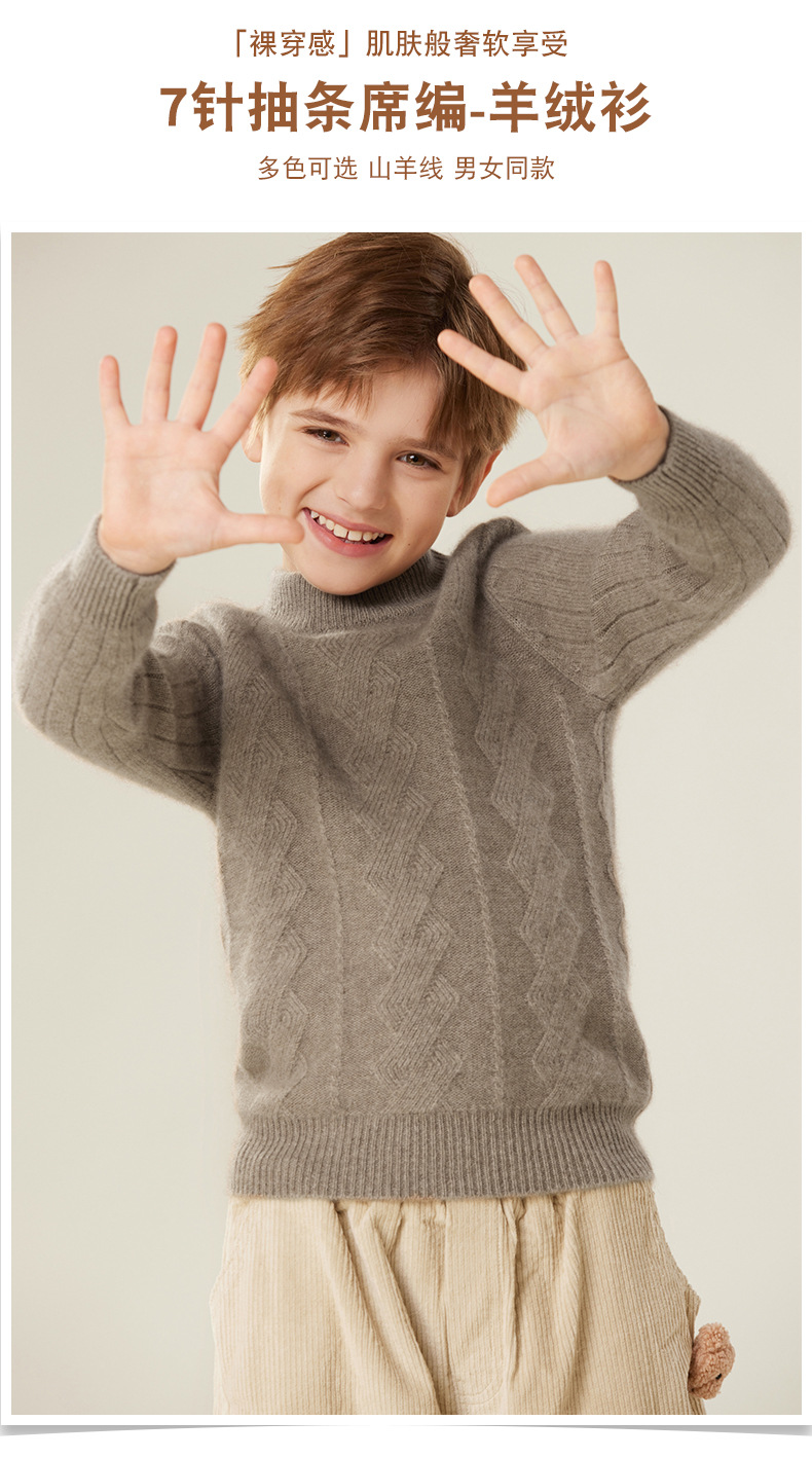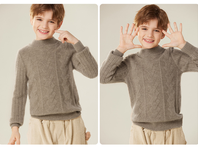 아동용 캐시미어 스웨터 하프 터틀넥 케이블 트위스트 두꺼운 바닥 소년 소녀 베이비 다용도 니트 풀오버 스웨터