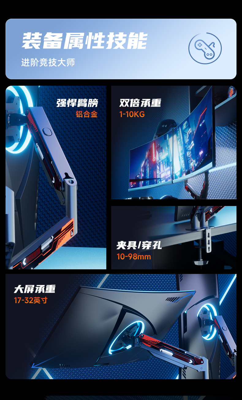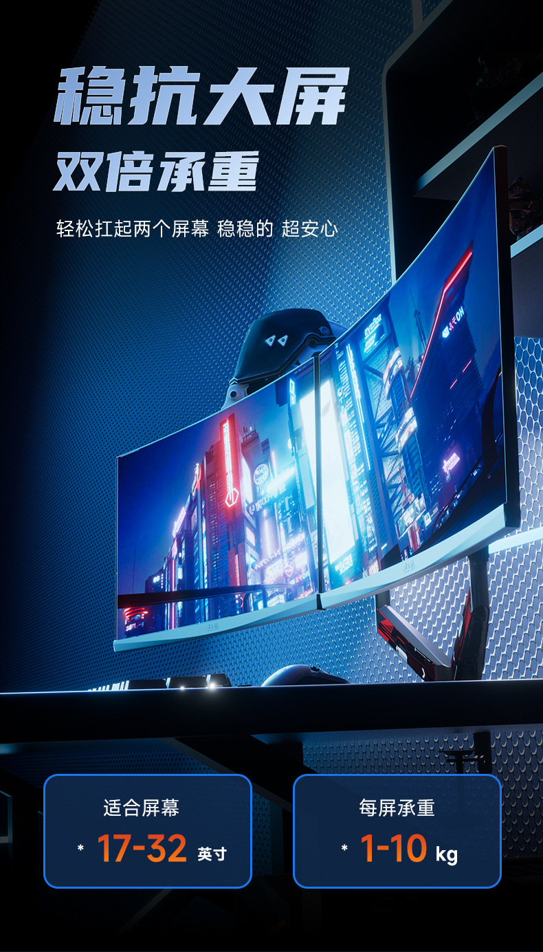 • 듀얼 스크린 게이밍 흑백 모델 [ 16-32inch ] [듀얼 스크린 모니터 스탠드, 이중 효율]