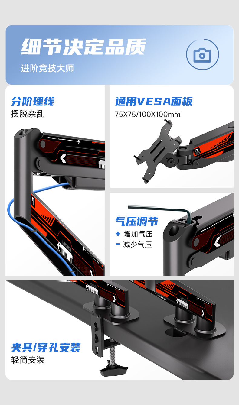 • 듀얼 스크린 게이밍 레드 앤 화이트 모델 [ 16-32inch ] [듀얼 스크린 모니터 스탠드, 이중 효율]