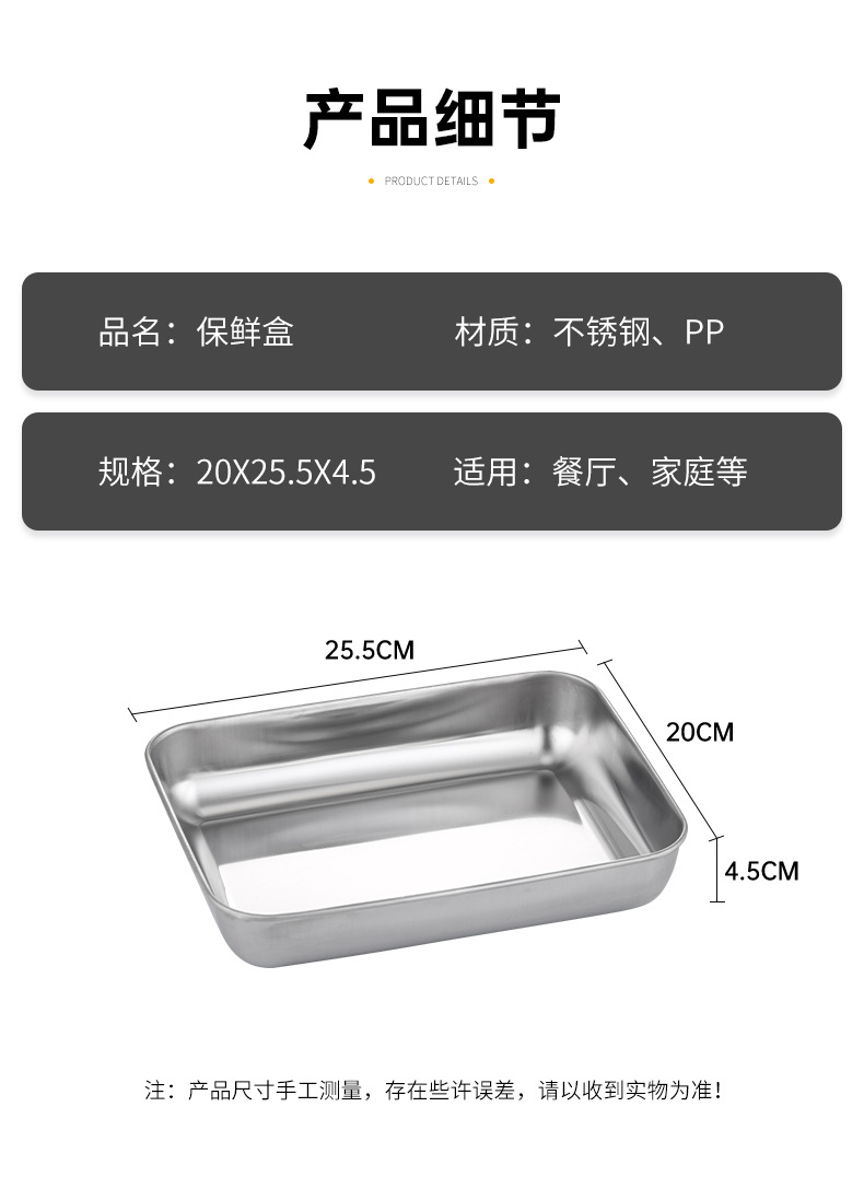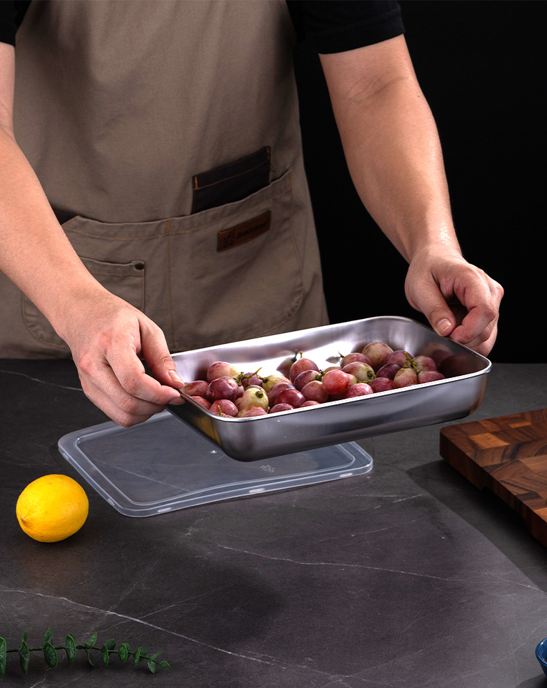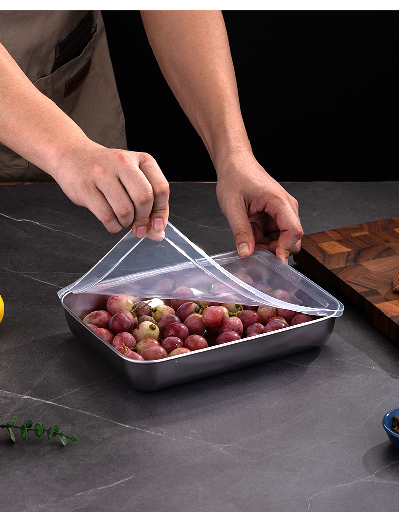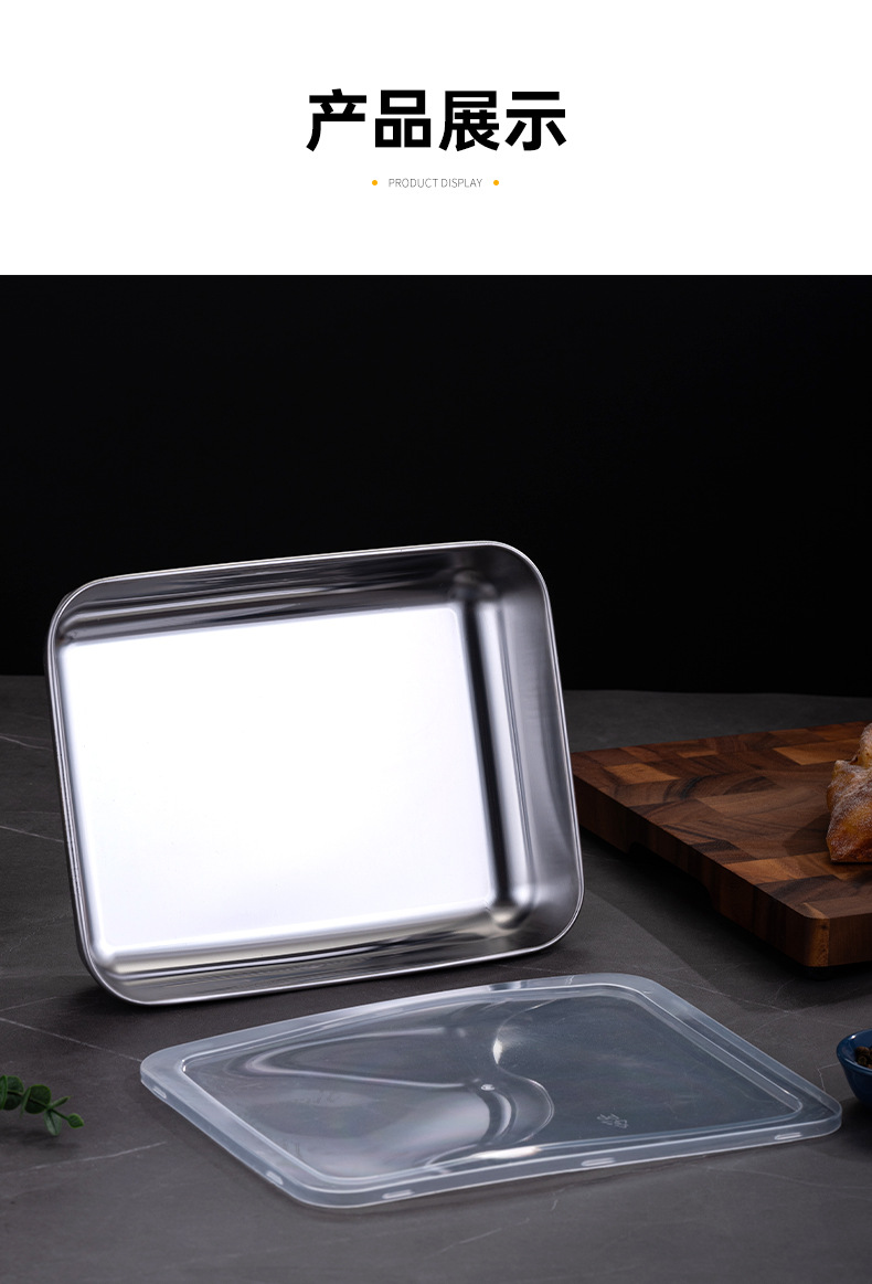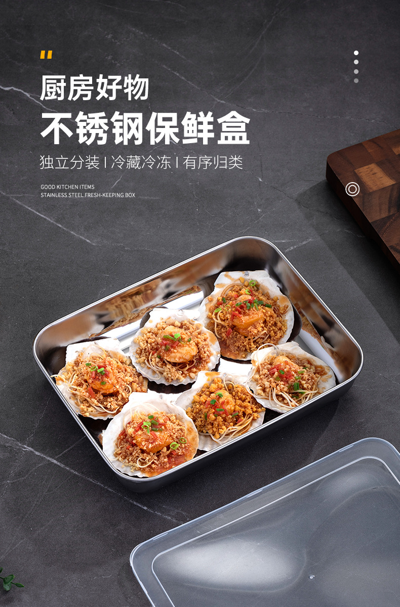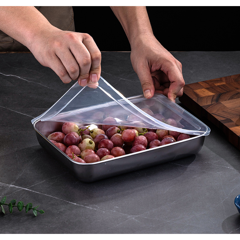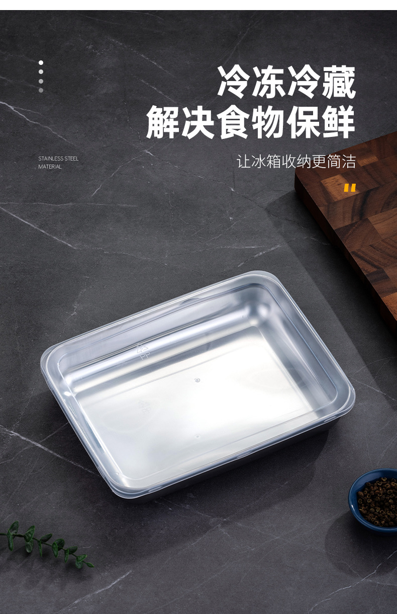 뚜껑 만두 스퀘어 플레이트 식품 등급 냉장고 밀봉 된 신선한 보관 상자 접시 직사각형 트레이 스테인레스 스틸 스퀘어 박스스토어 가기