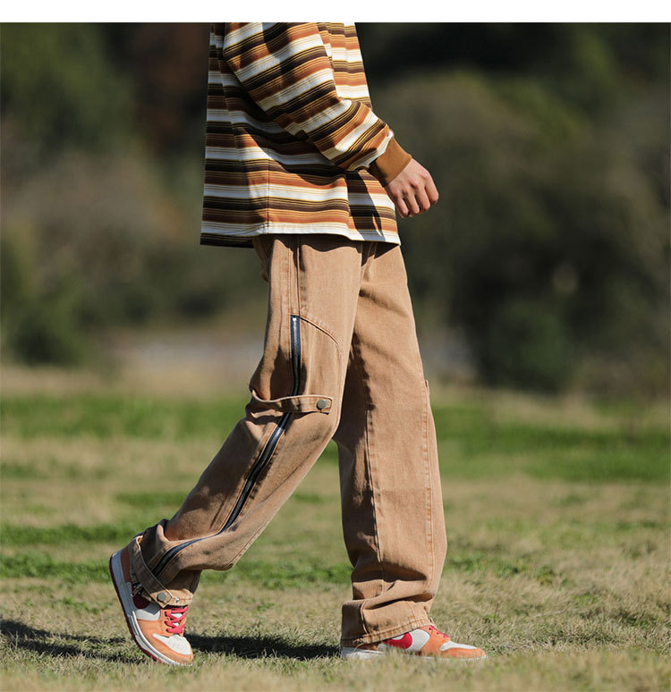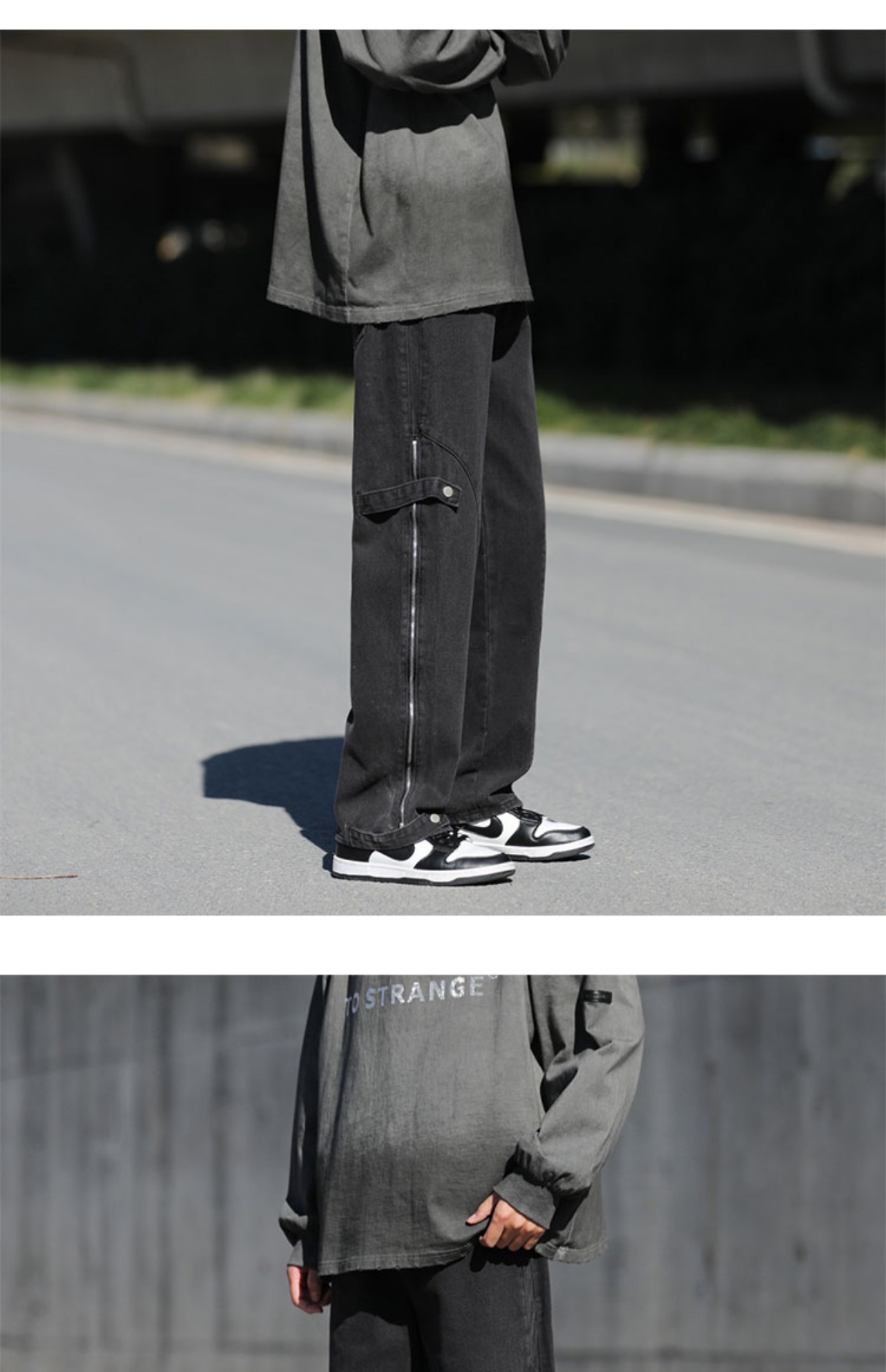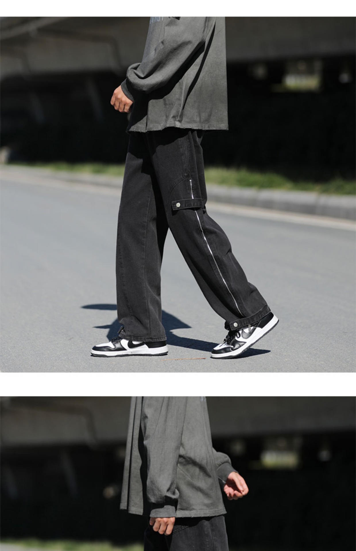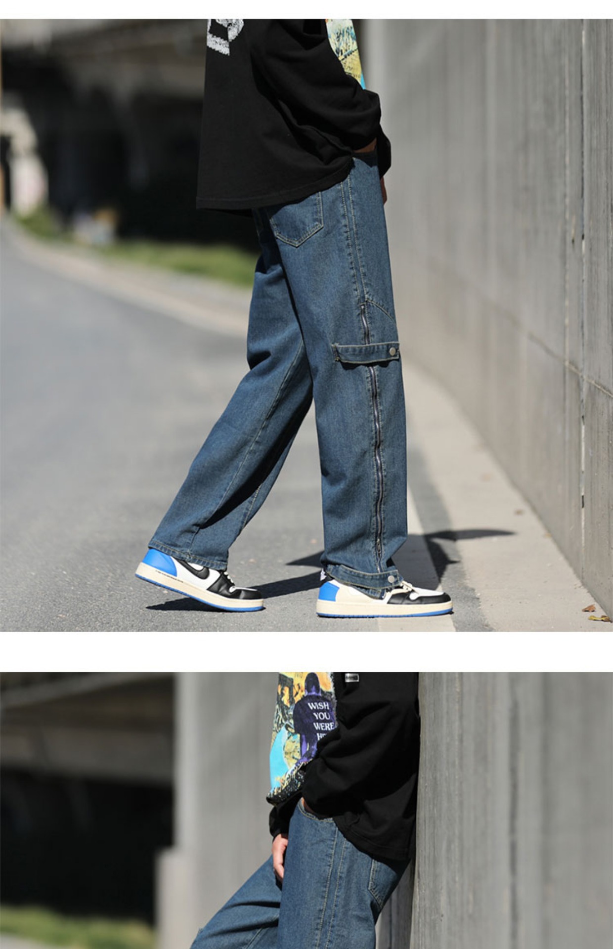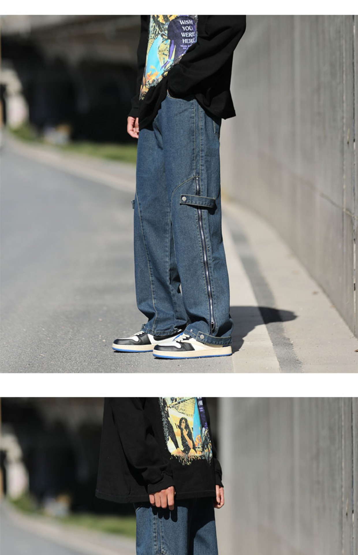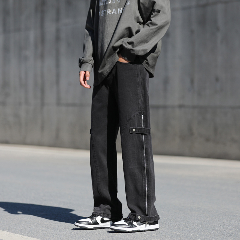 남성용 아메리칸 스타일 하이 스트리트 청바지 남성용 봄과 가을 지퍼 스플릿 스트레이트 팬츠 루즈 인 인기 브랜드 와이드 레그 팬츠스토어 가기