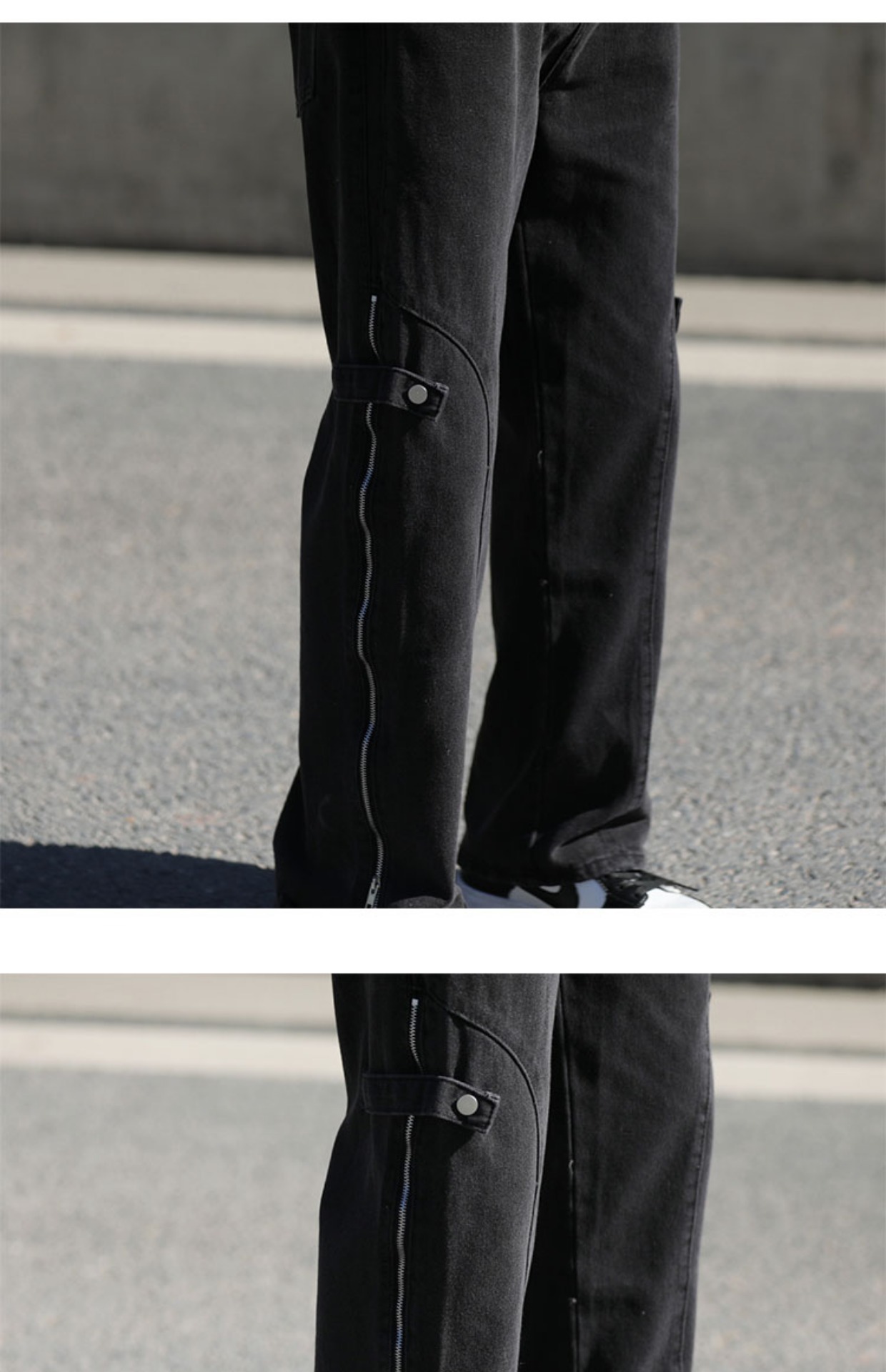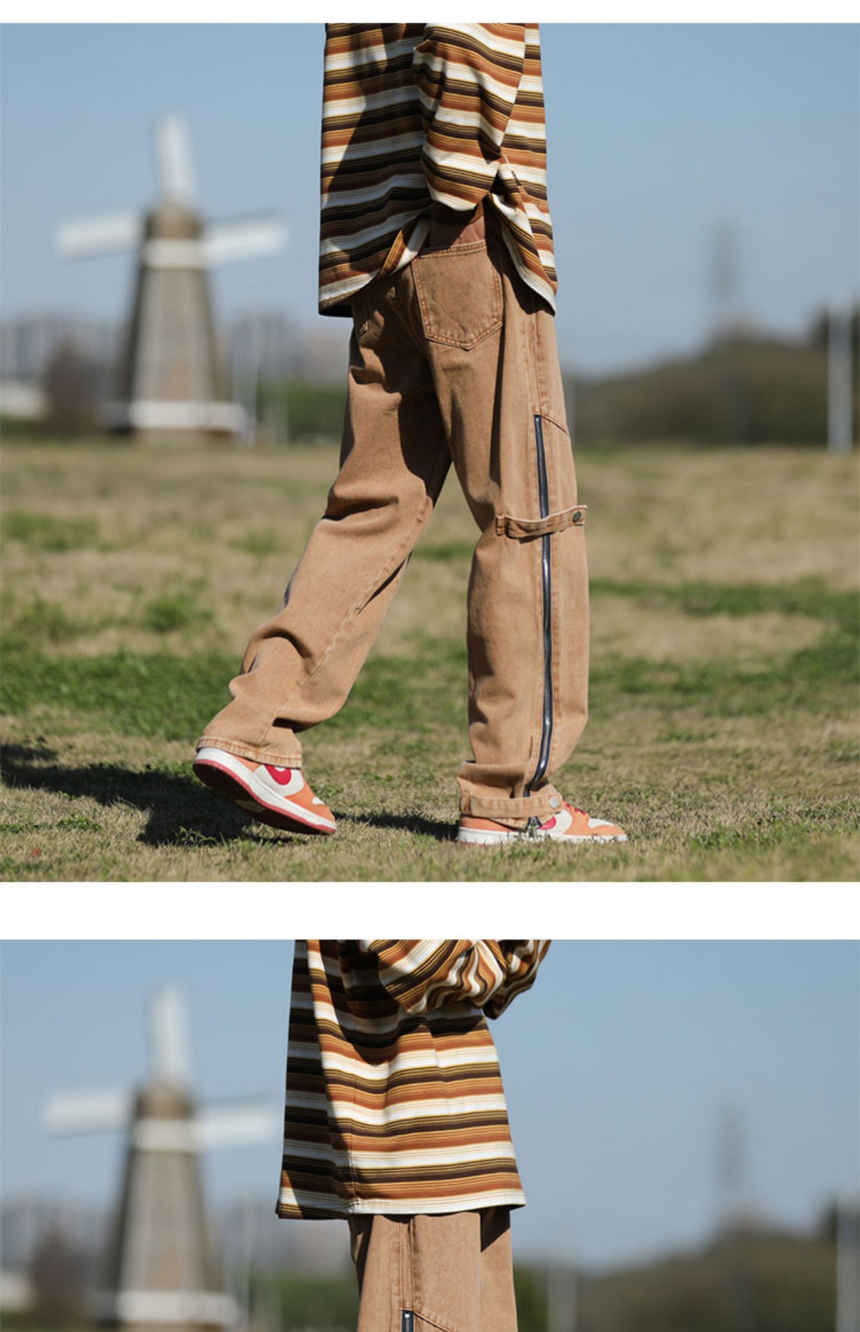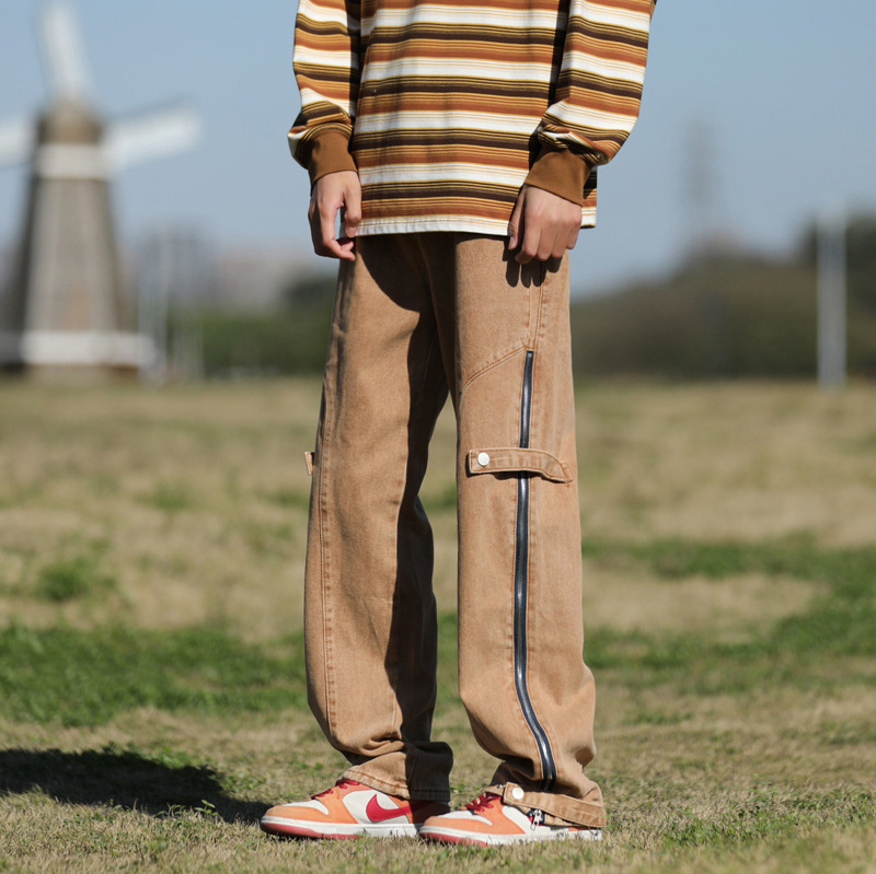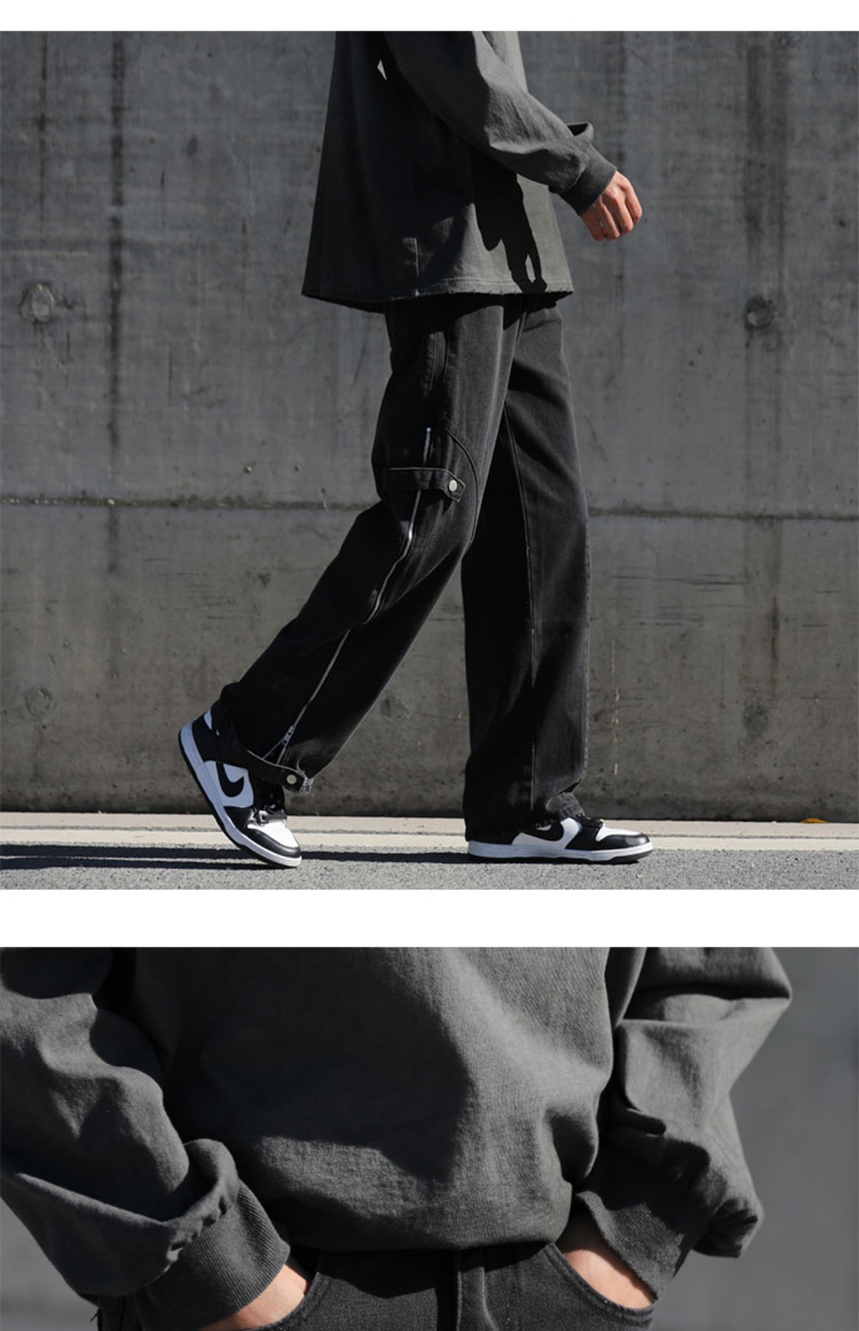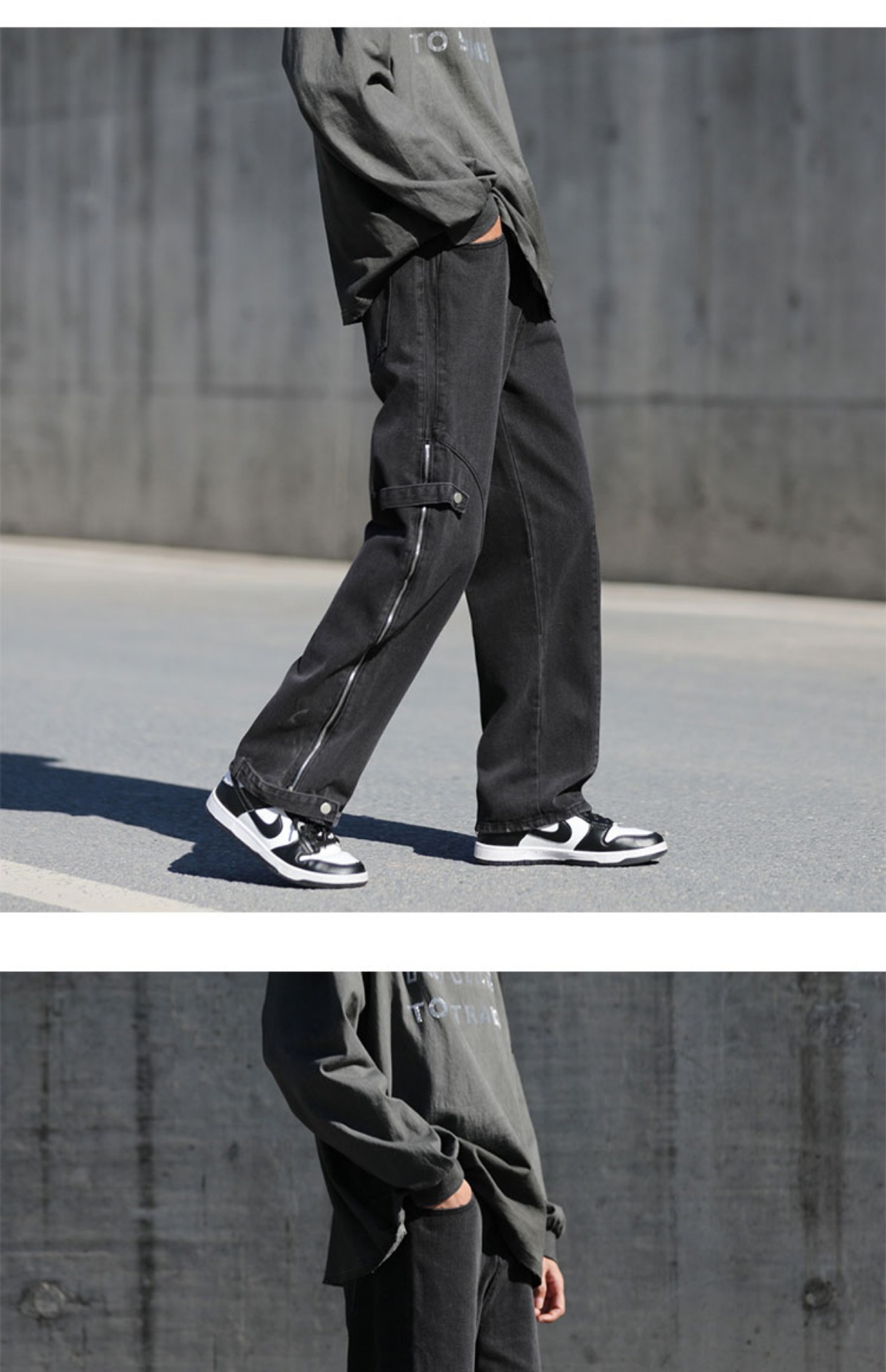 남성용 아메리칸 스타일 하이 스트리트 청바지 남성용 봄과 가을 지퍼 스플릿 스트레이트 팬츠 루즈 인 인기 브랜드 와이드 레그 팬츠스토어 가기
