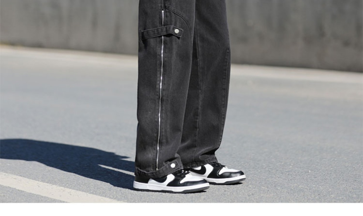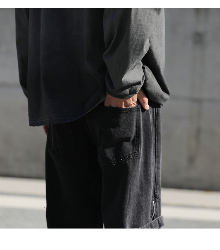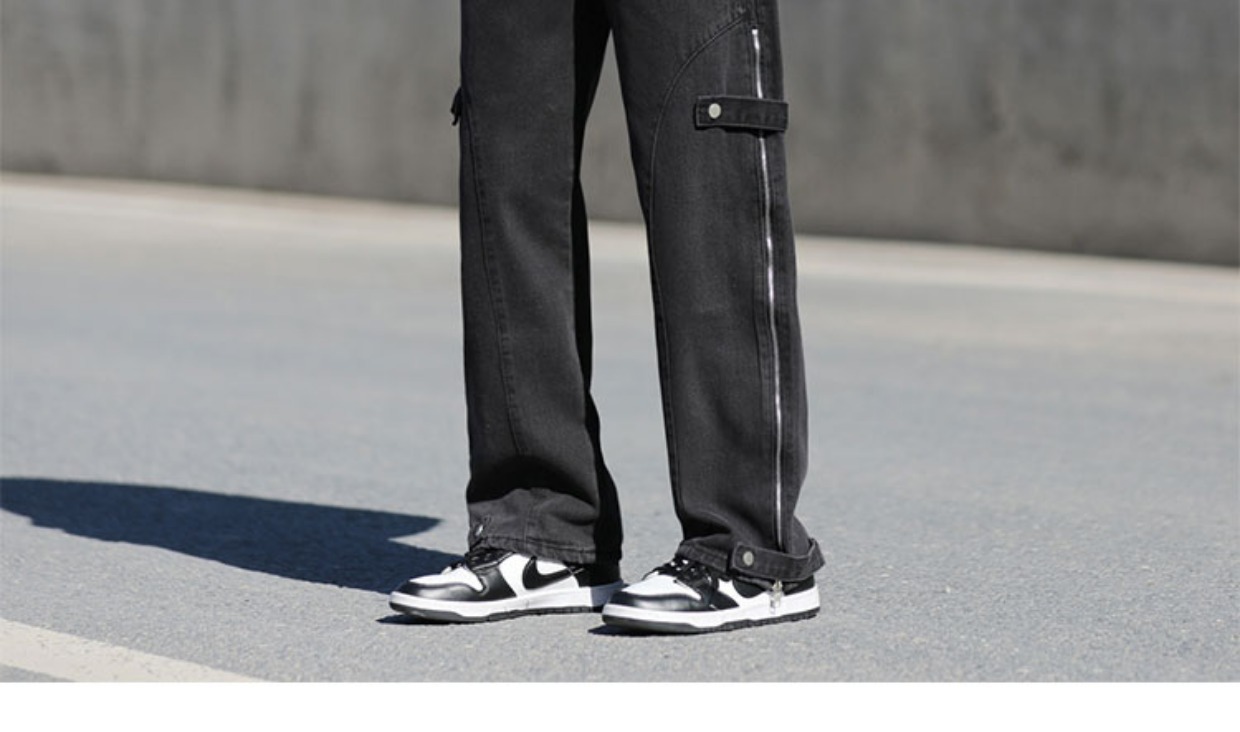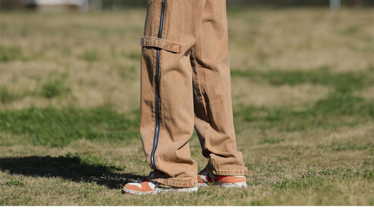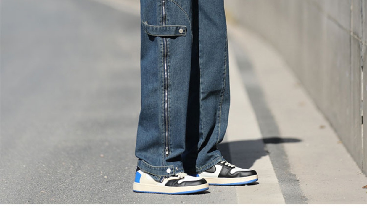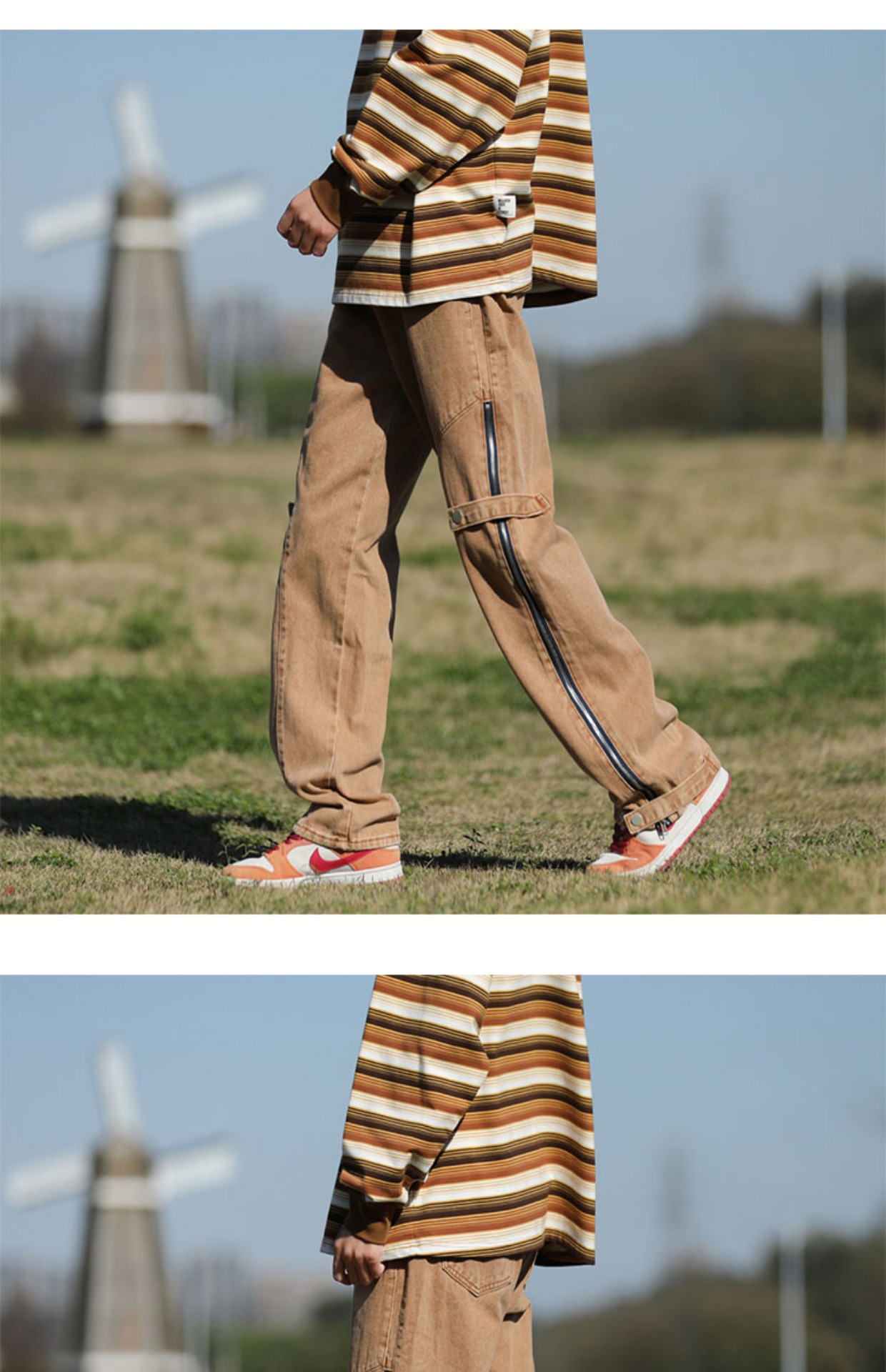 남성용 아메리칸 스타일 하이 스트리트 청바지 남성용 봄과 가을 지퍼 스플릿 스트레이트 팬츠 루즈 인 인기 브랜드 와이드 레그 팬츠스토어 가기