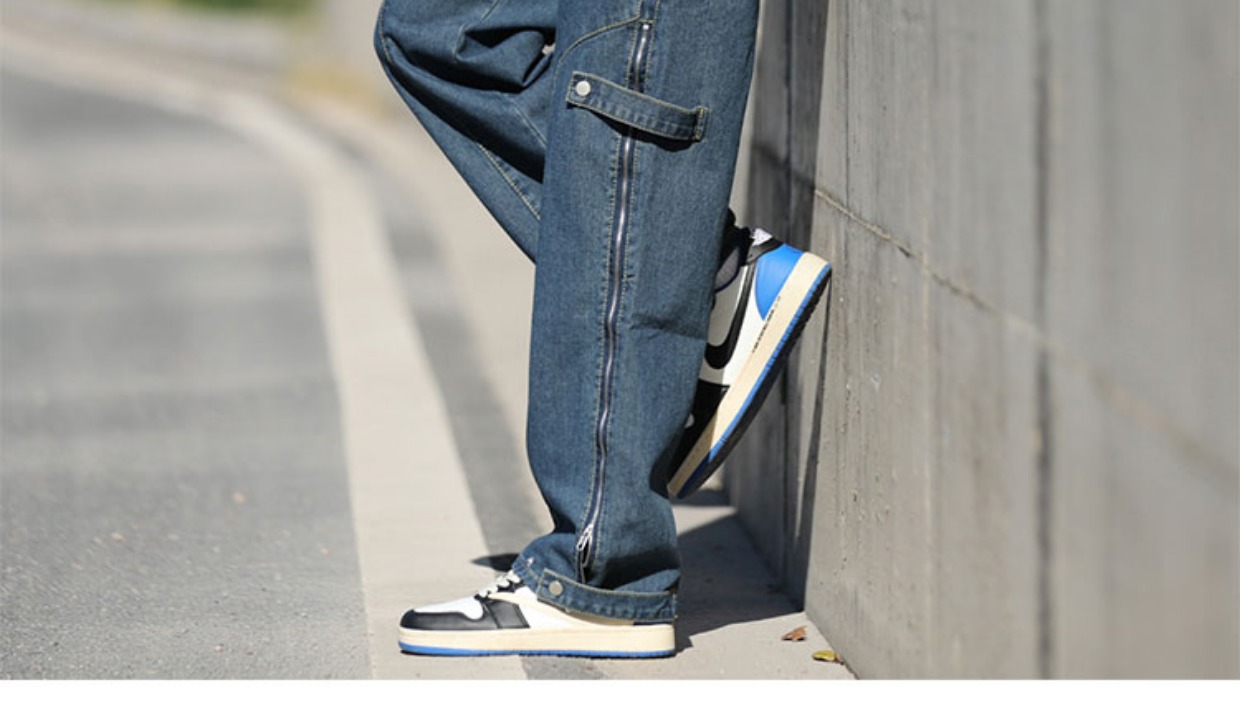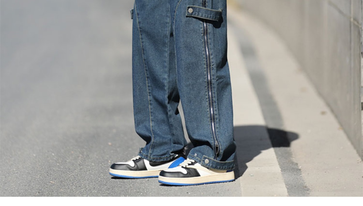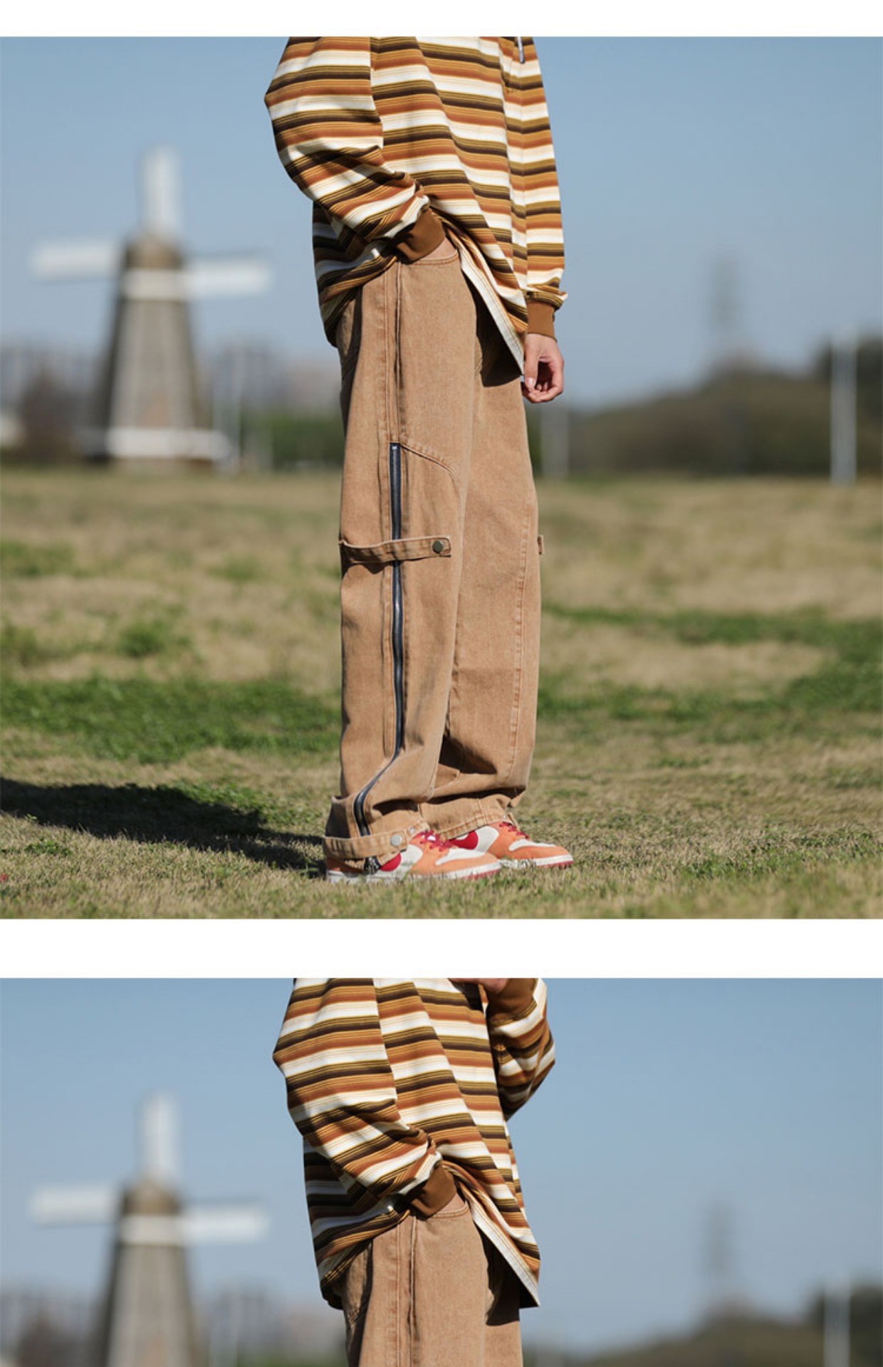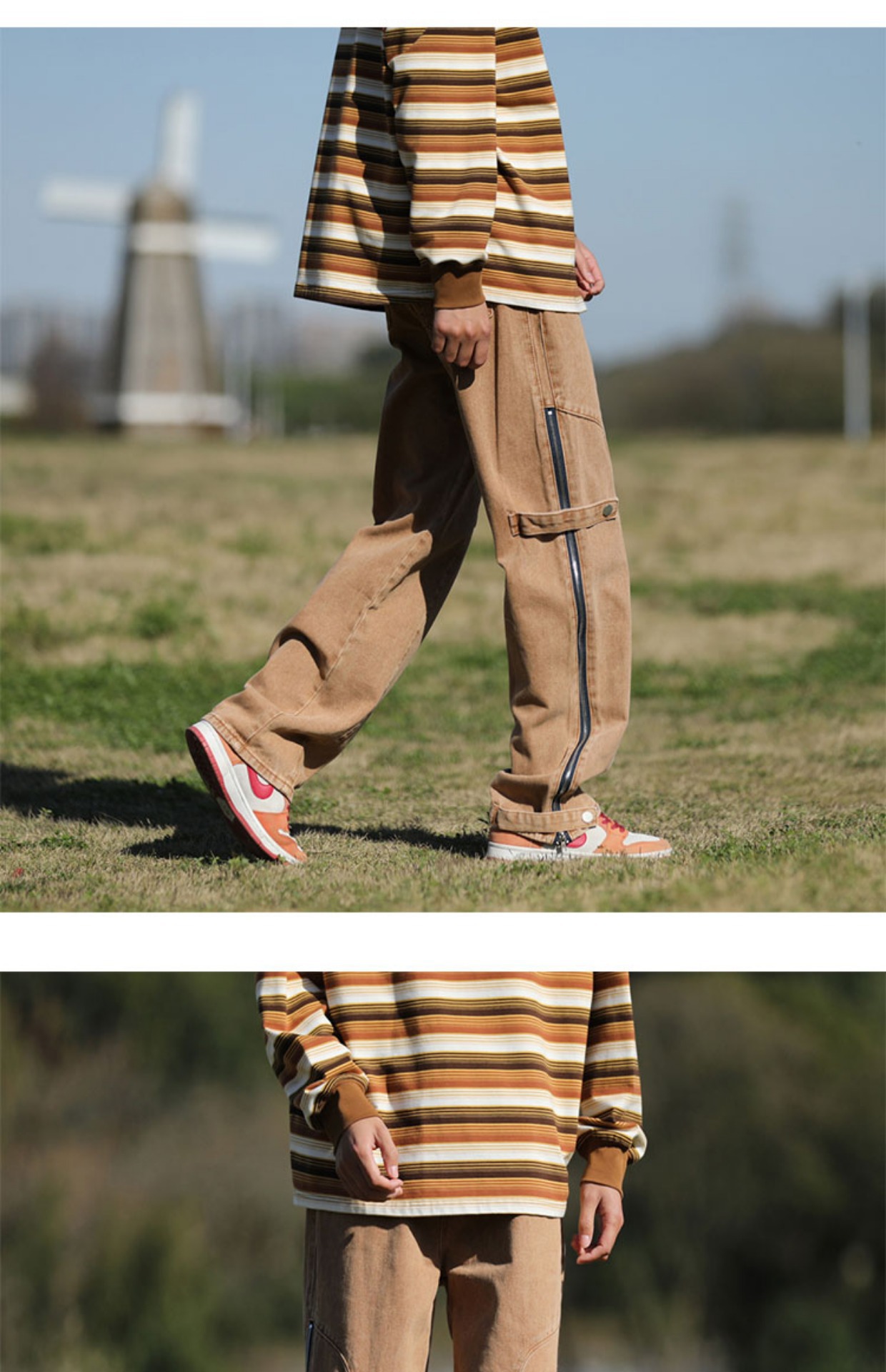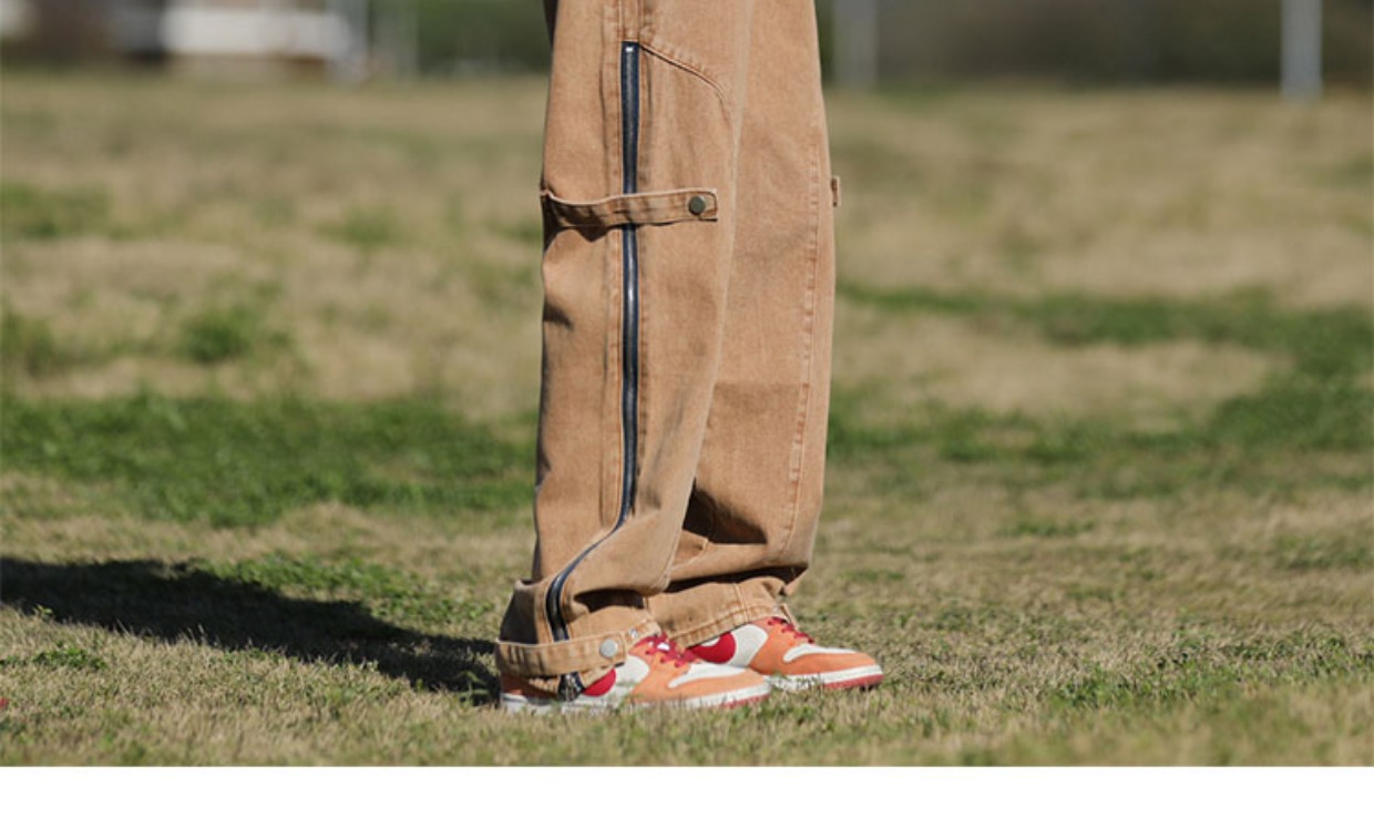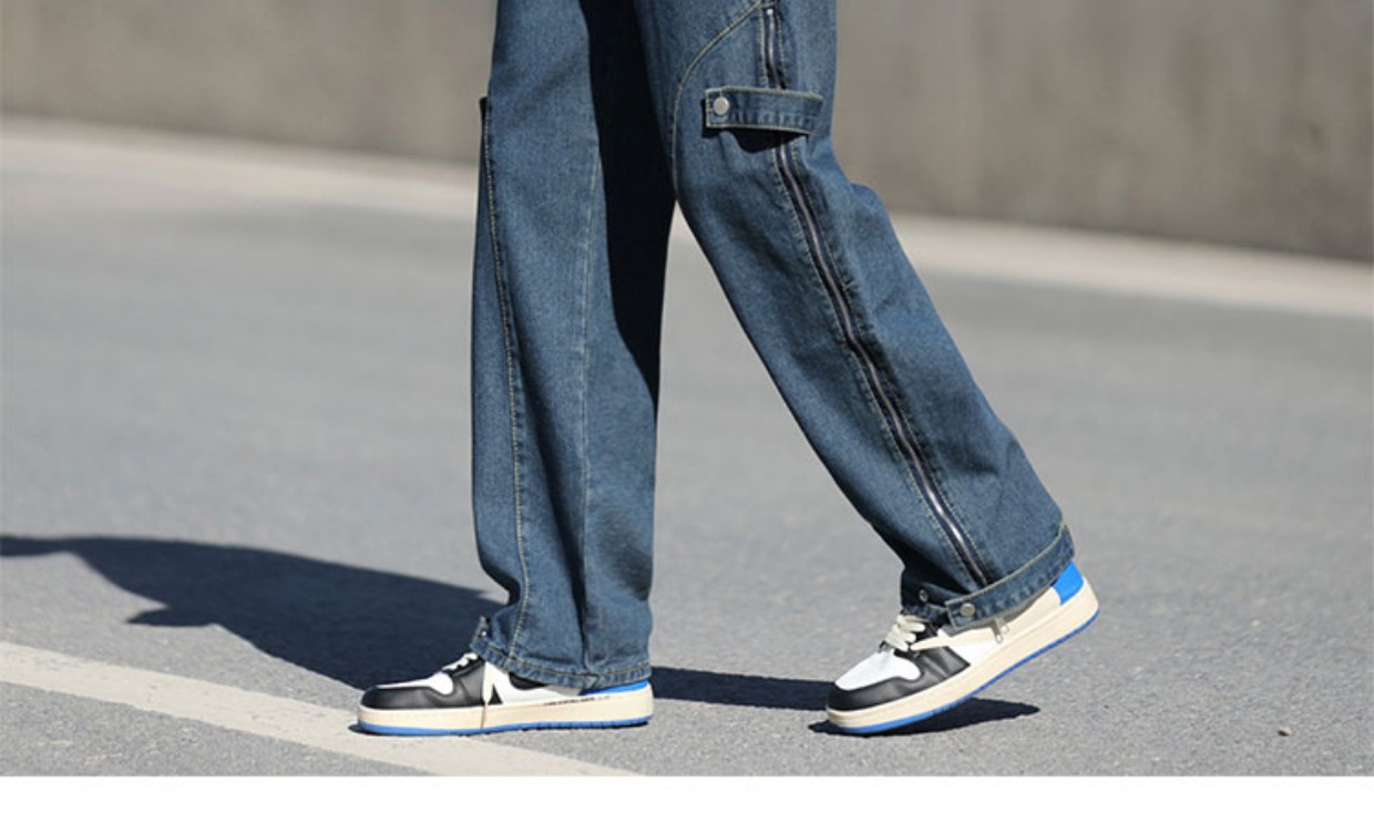 남성용 아메리칸 스타일 하이 스트리트 청바지 남성용 봄과 가을 지퍼 스플릿 스트레이트 팬츠 루즈 인 인기 브랜드 와이드 레그 팬츠스토어 가기