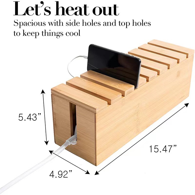 대나무 커버 케이블 저장 상자 데스크탑 플러그인 라우터 데이터 케이블 마무리 상자 나무 와이어 박스