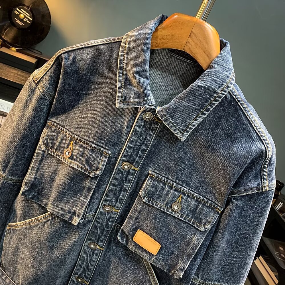 국경 간 스플래시 잉크 복고풍 데님 코트 남성 거리 일본 패션 브랜드 봄과 가을 느슨한 캐주얼 재킷 도매스토어 가기