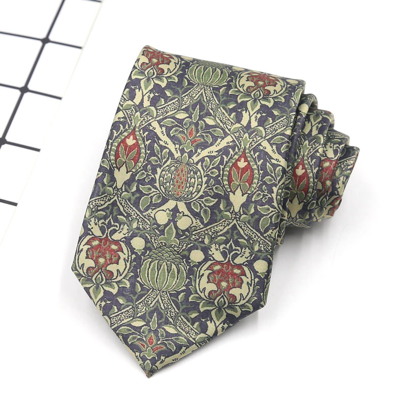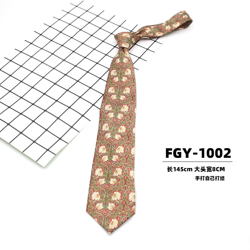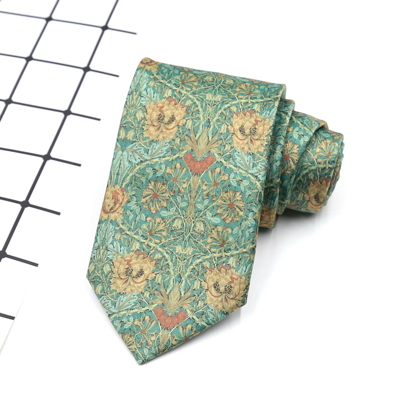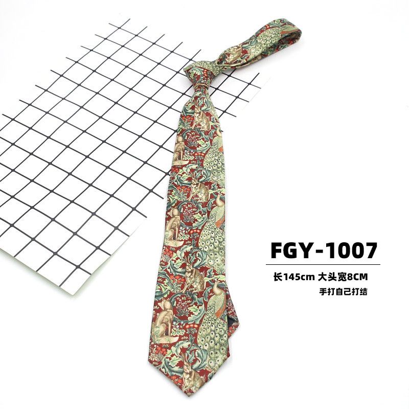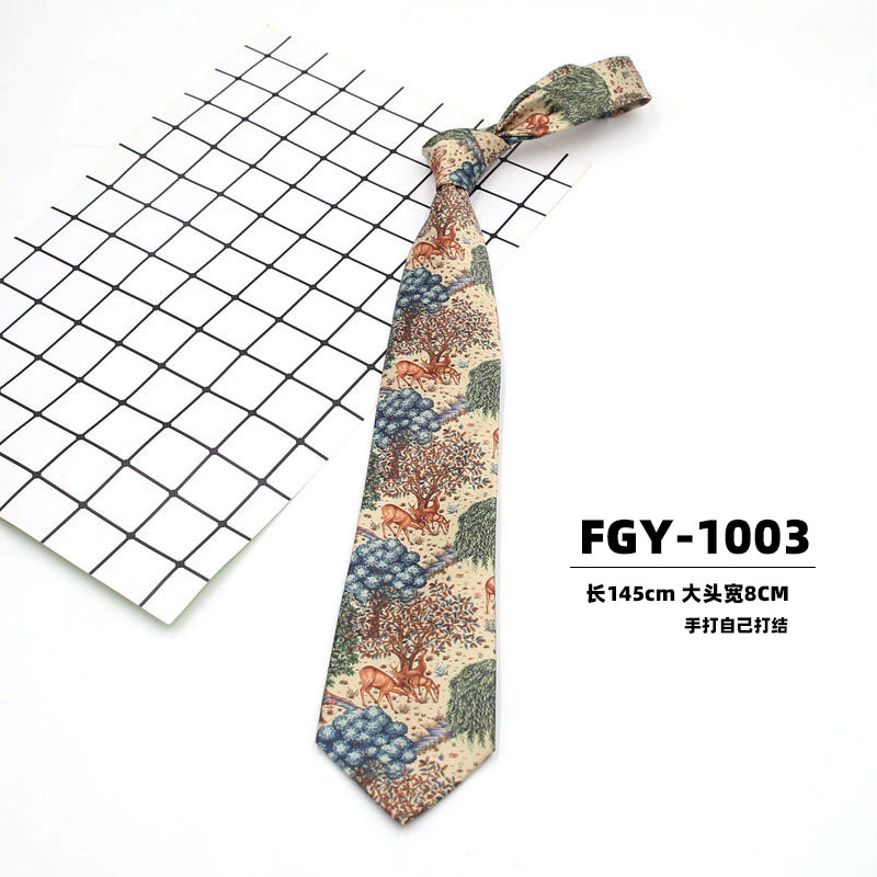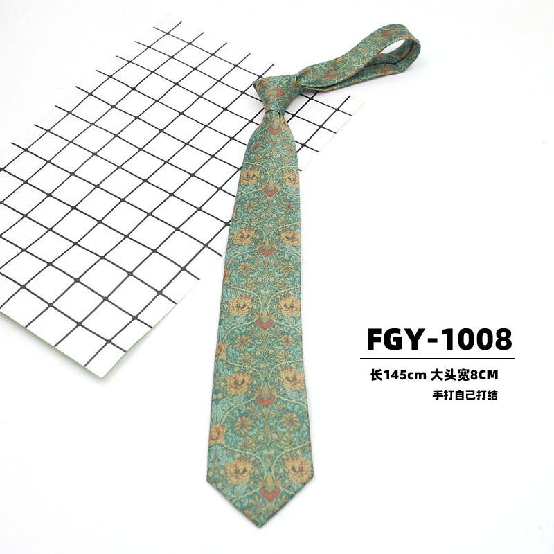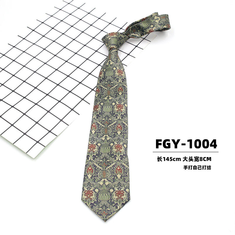 빈티지 홍콩 스타일 꽃 넥타이 앤티크 와이드 8cm 유행 브랜드 프린트 실크 올 매치 한국 스타일 캐주얼 넥타이