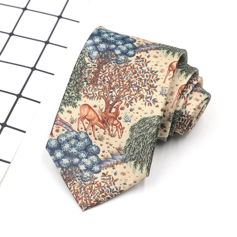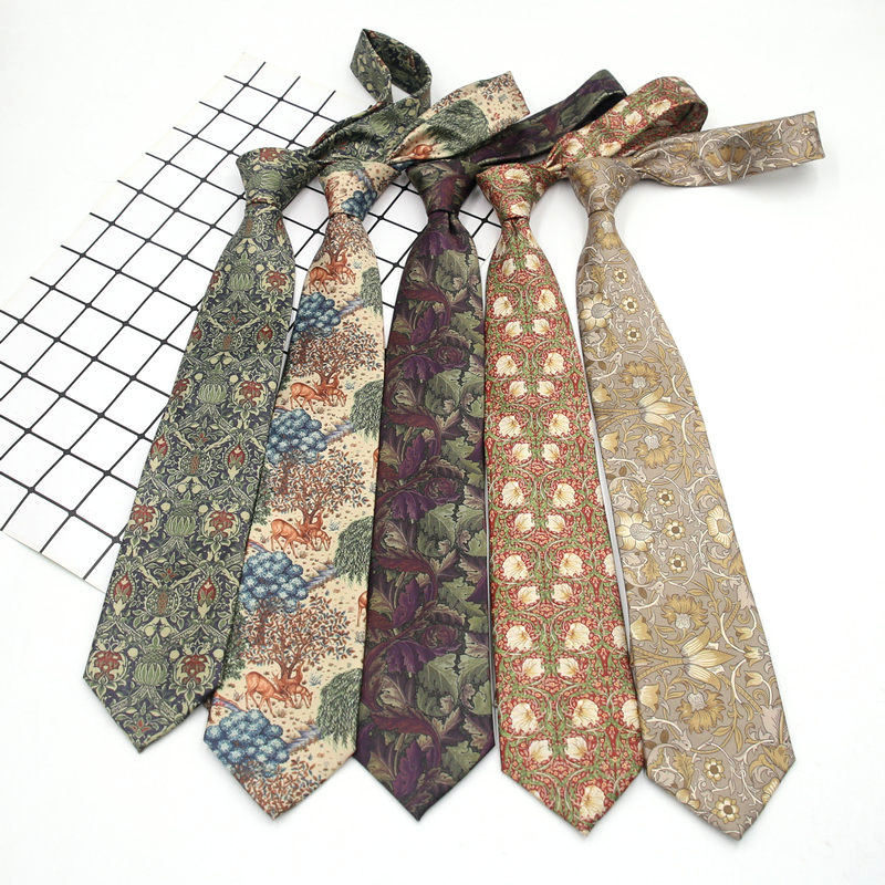빈티지 홍콩 스타일 꽃 넥타이 앤티크 와이드 8cm 유행 브랜드 프린트 실크 올 매치 한국 스타일 캐주얼 넥타이스토어 가기