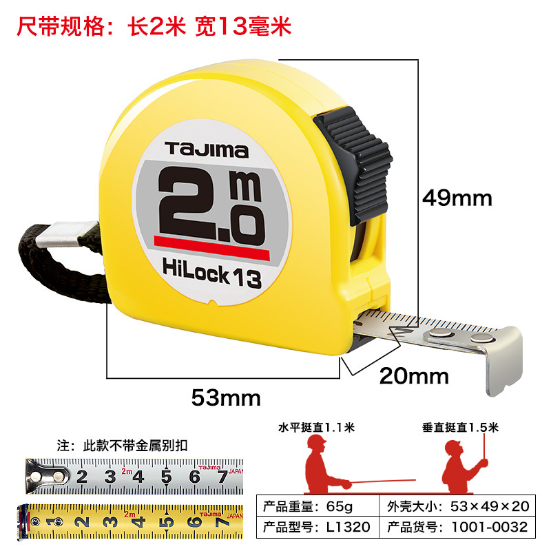 일본의 타지 마 테이프 측정 강철 테이프 측정 2 미터 3 미터 5 미터 7.5 미터 10 미터 가구 통치자 미터 안티 컷 핸드 통치자 벨트 기타스토어 가기