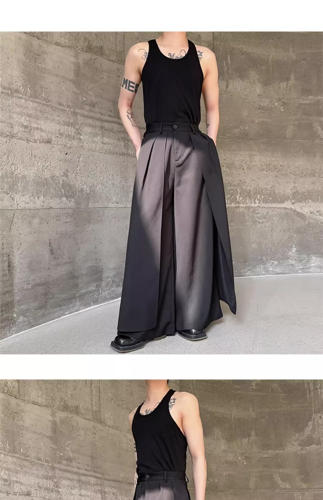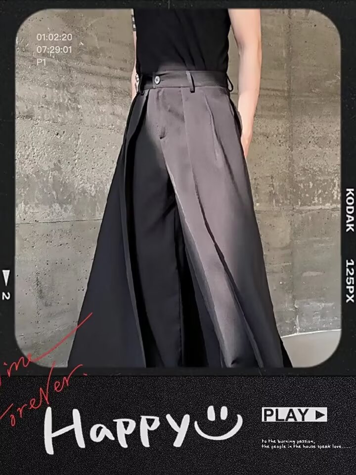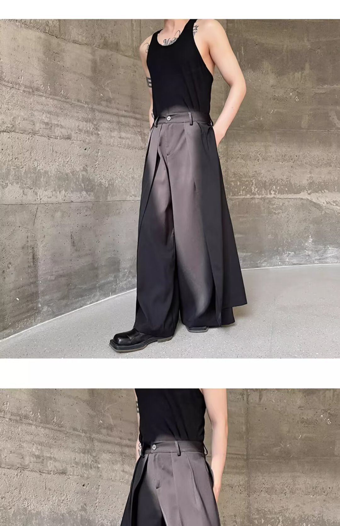 트렌디 한 브랜드 틈새 디자인 센스 다크 나이트 컬롯 남성과 여성을위한 더블 레이어 와이드 레그 팬츠 캐주얼 바지 스티치 다크 야마모토