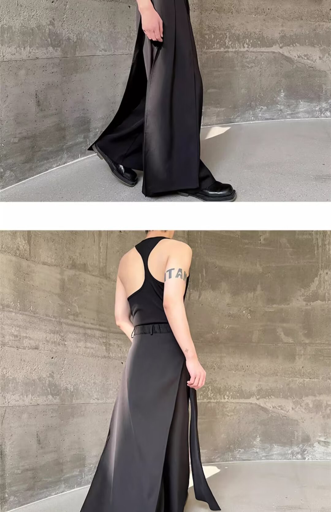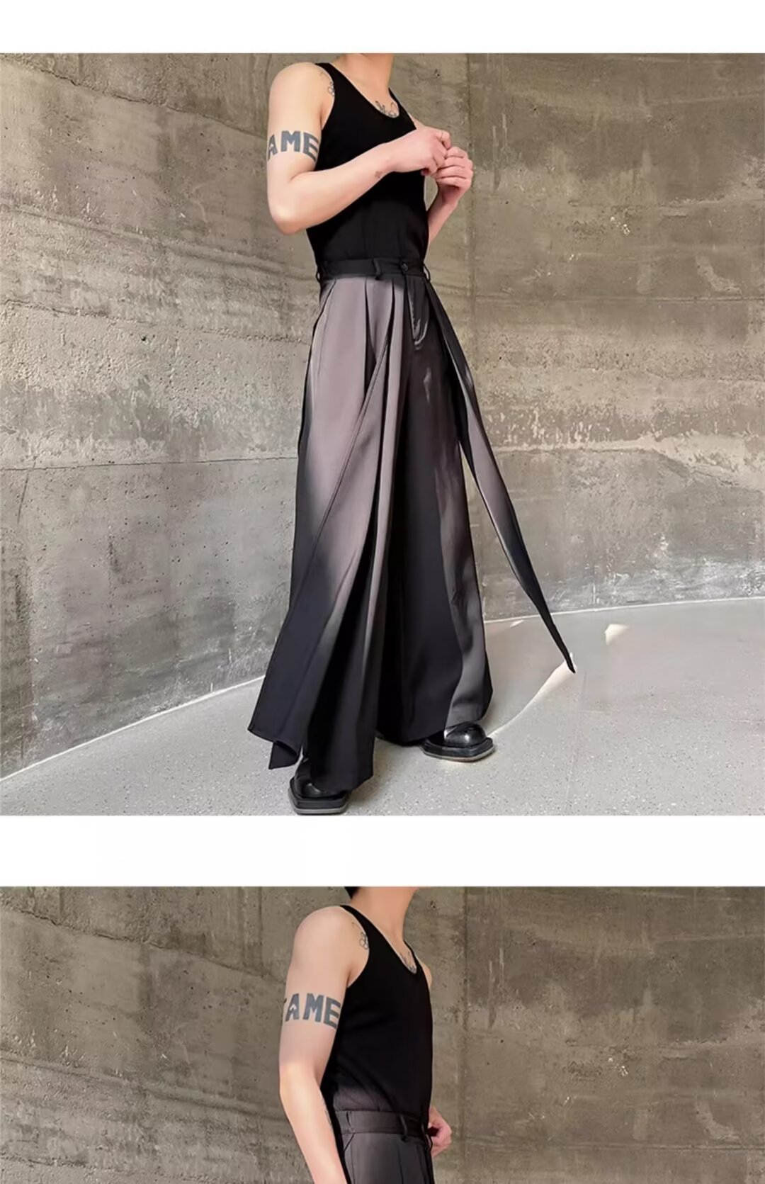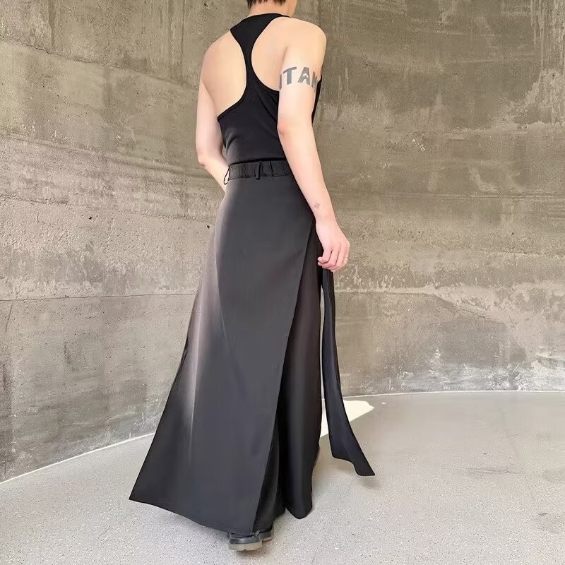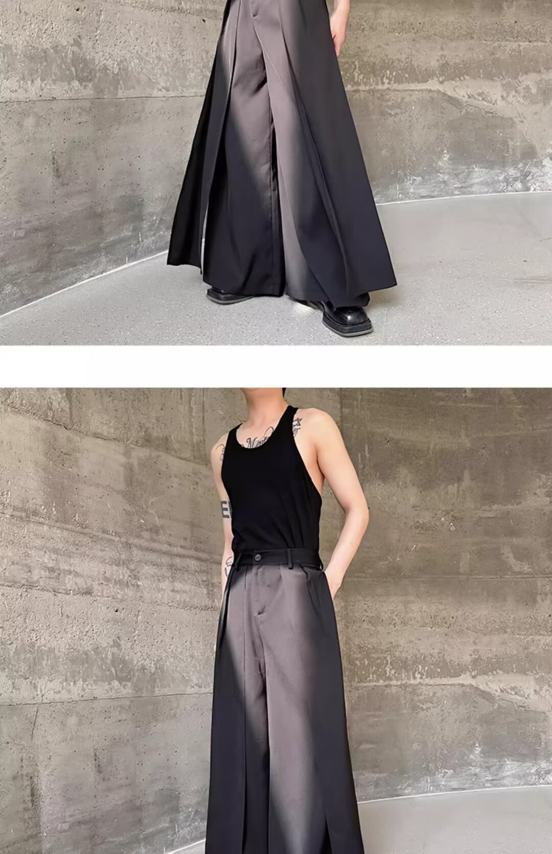 트렌디 한 브랜드 틈새 디자인 센스 다크 나이트 컬롯 남성과 여성을위한 더블 레이어 와이드 레그 팬츠 캐주얼 바지 스티치 다크 야마모토