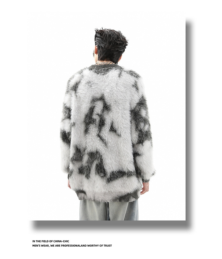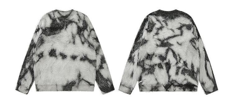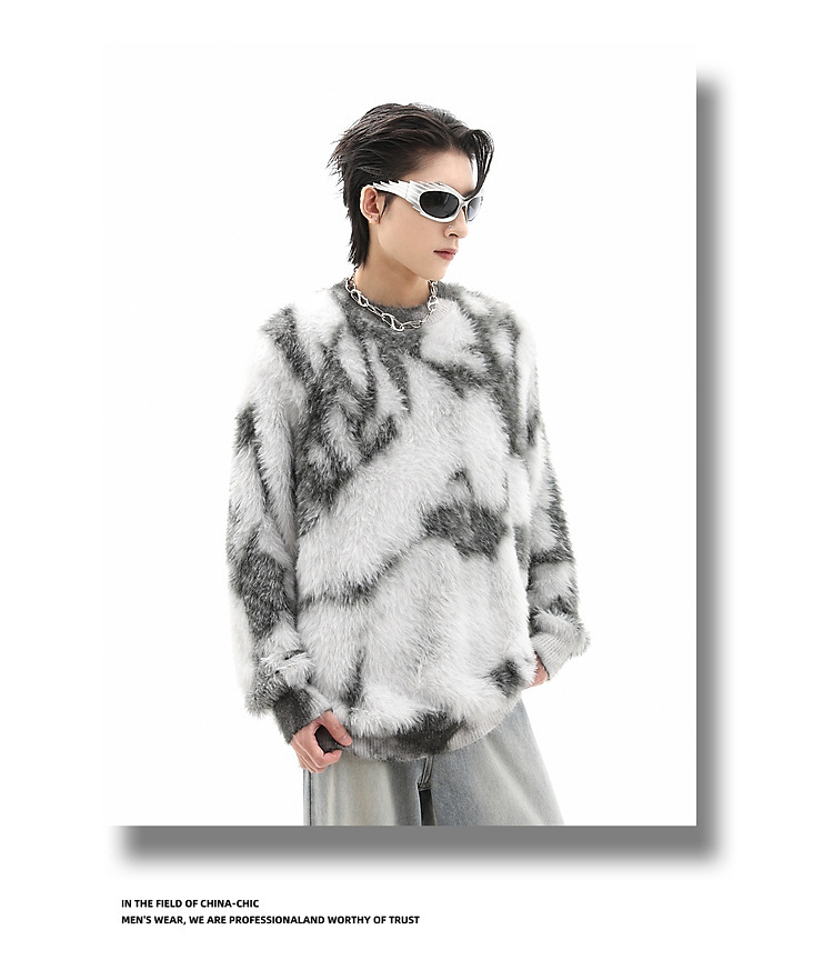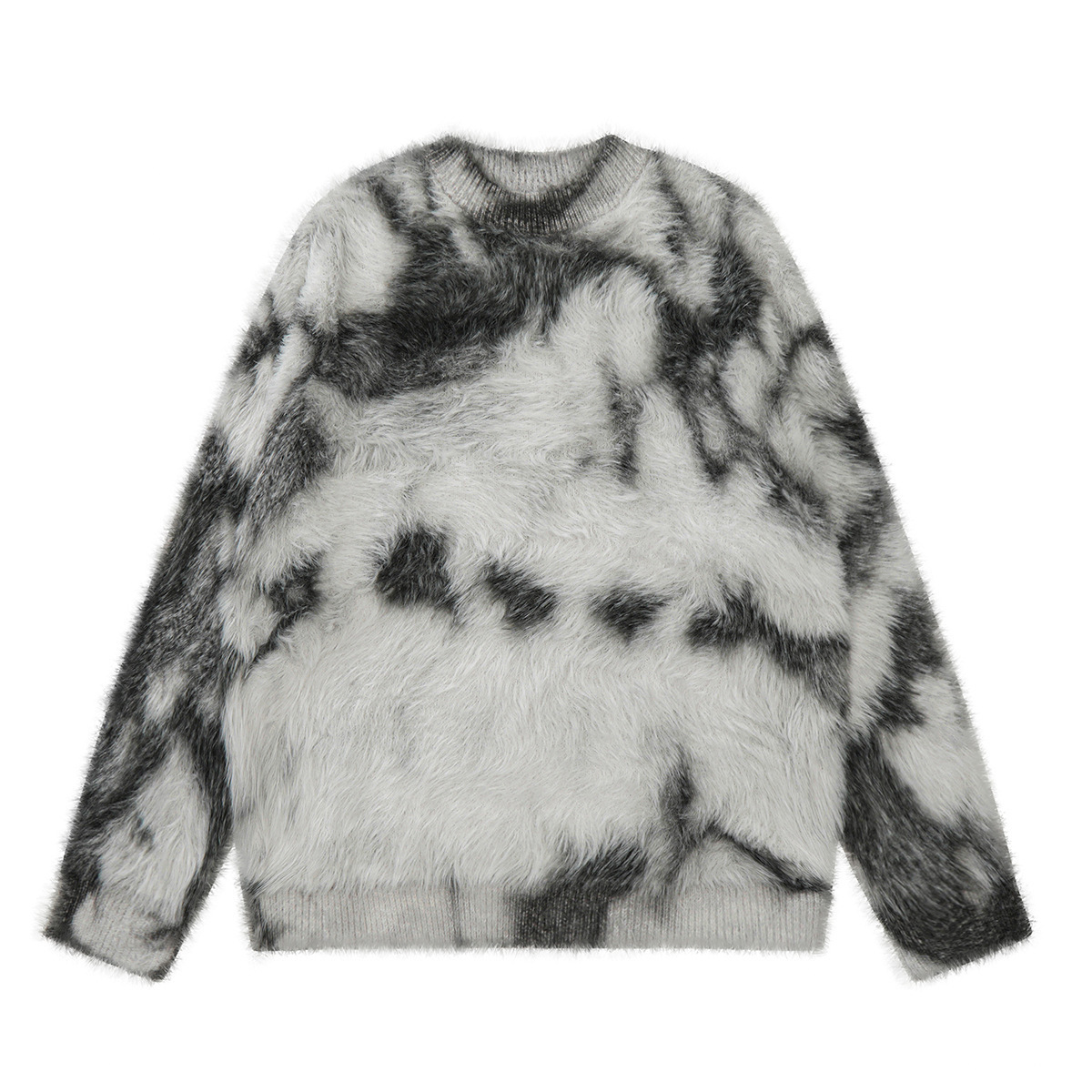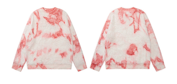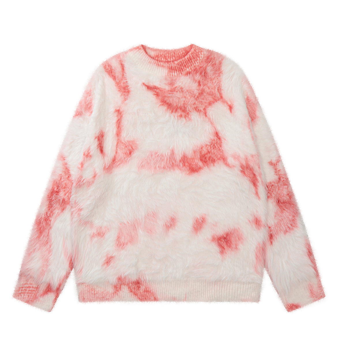 하이 스트리트 트렌디 브랜드 타이 다이 밍크 같은 스웨터 겨울 남자 느슨한 캐주얼 긴팔 라운드 넥 소프트 왁스 모피 스웨터