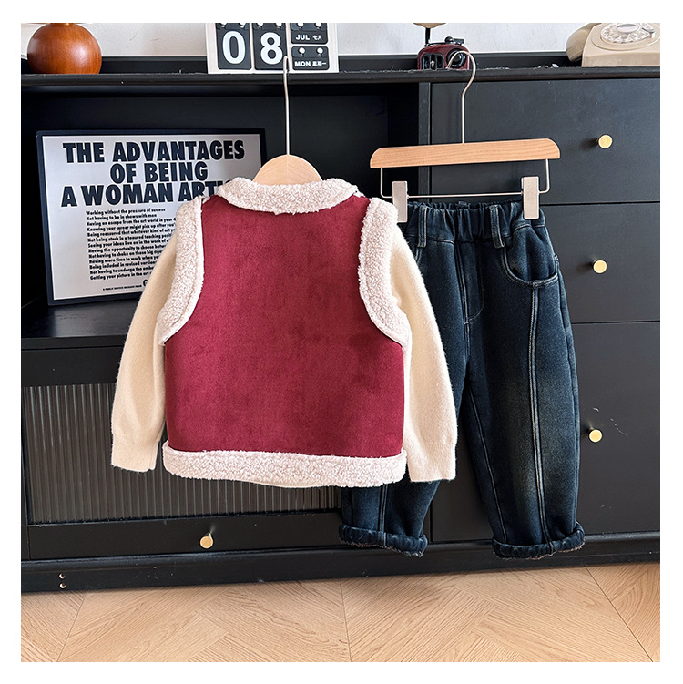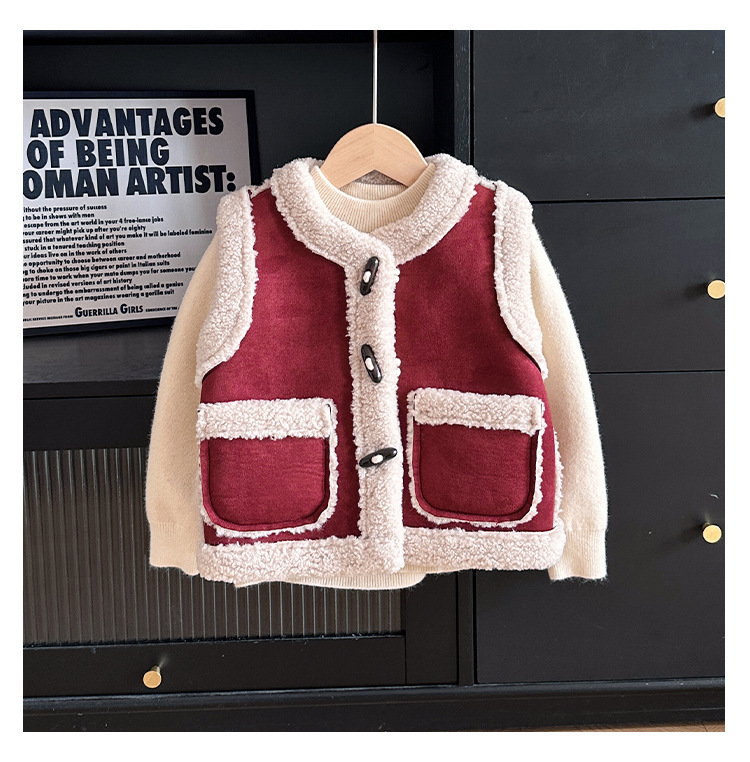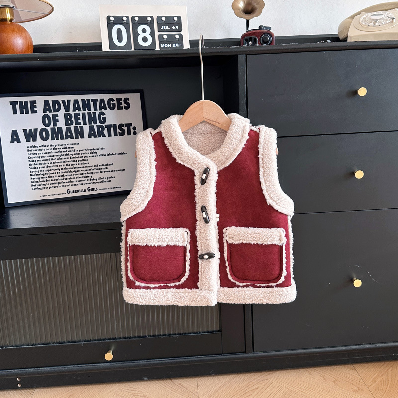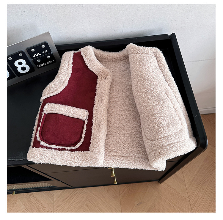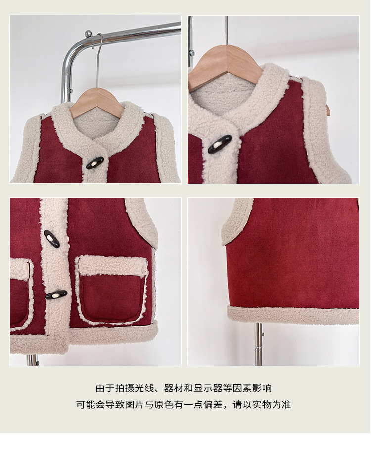 시안 아오 2024 겨울 신인소년소녀 한국 설날 양고기 벨벳 웨이스트코트 어린이 올매치 두꺼운 조끼