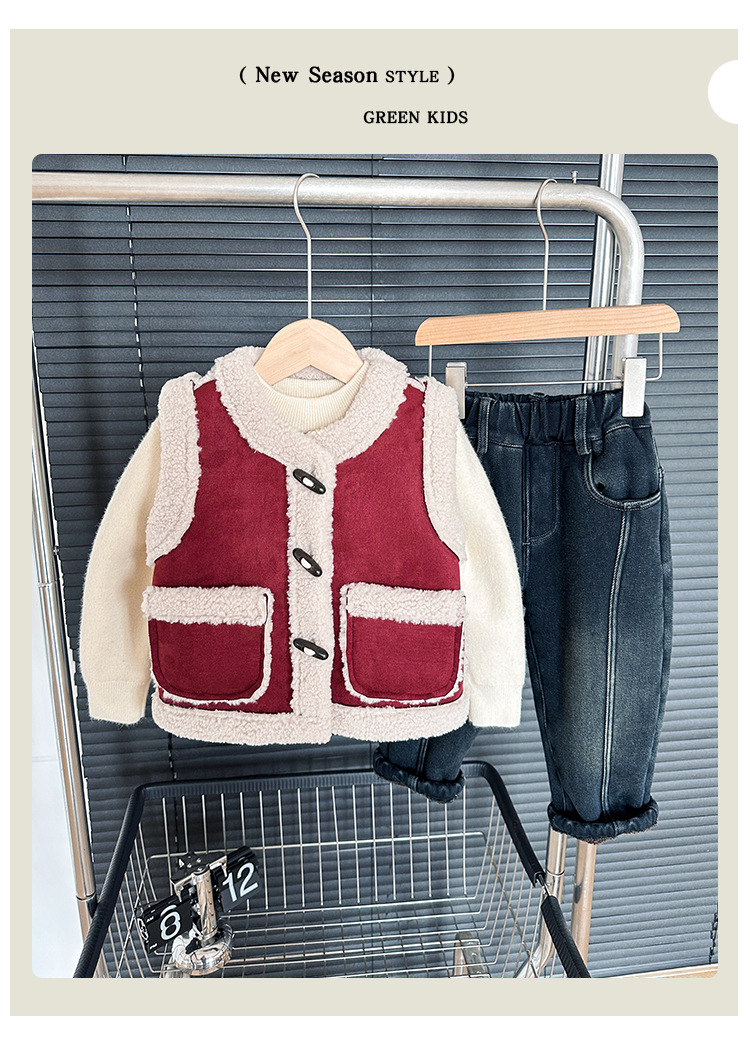 시안 아오 2024 겨울 신인소년소녀 한국 설날 양고기 벨벳 웨이스트코트 어린이 올매치 두꺼운 조끼스토어 가기