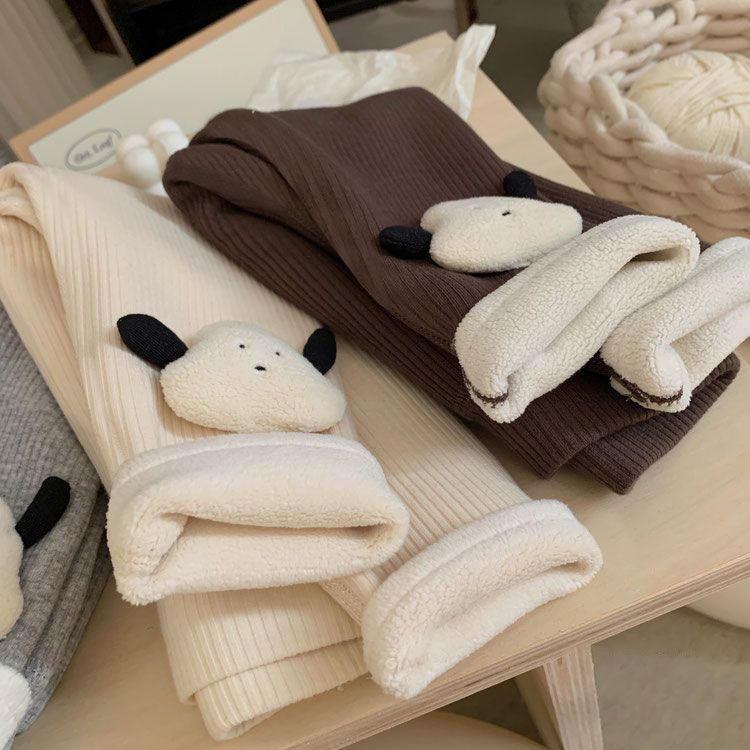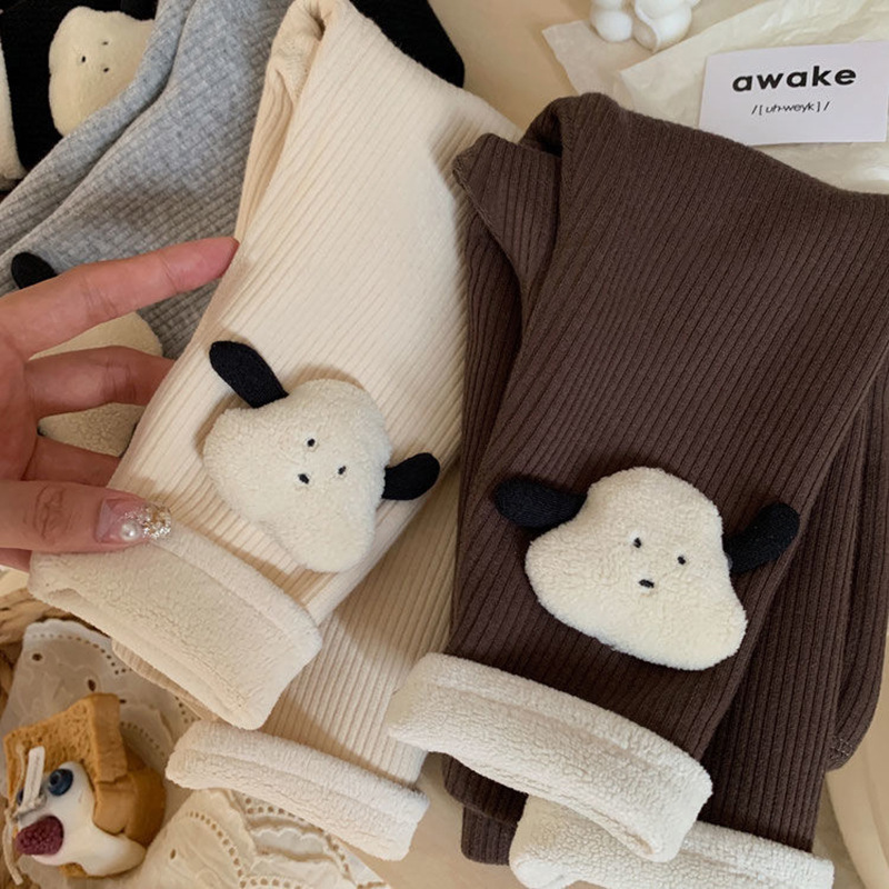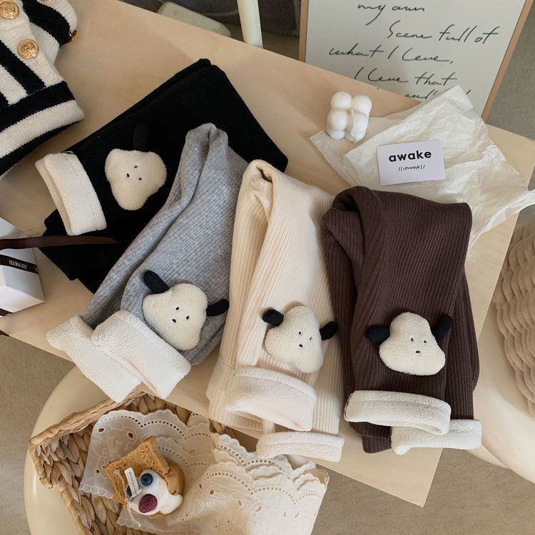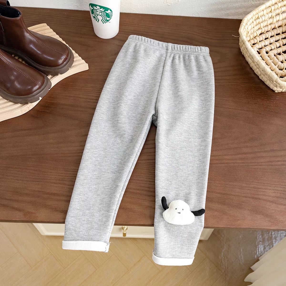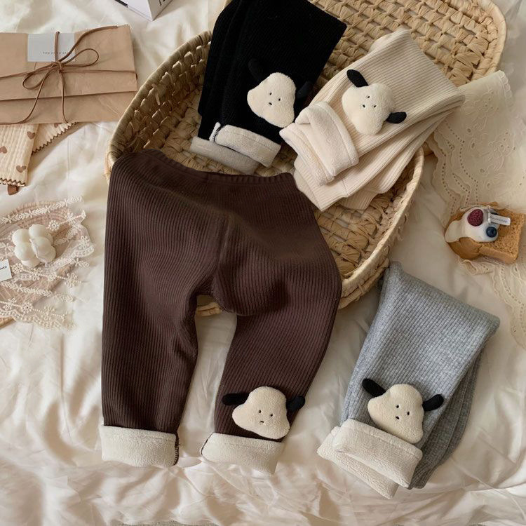 소녀들의 가을과 겨울 새로운 만화 기모 레깅스 한국식 아동복 여성 아기 원피스 벨벳 따뜻한 아우터 세련된 바지스토어 가기