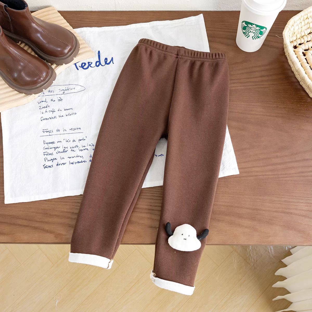 소녀들의 가을과 겨울 새로운 만화 기모 레깅스 한국식 아동복 여성 아기 원피스 벨벳 따뜻한 아우터 세련된 바지