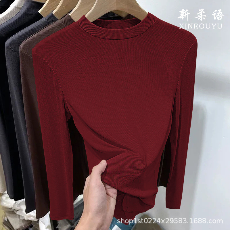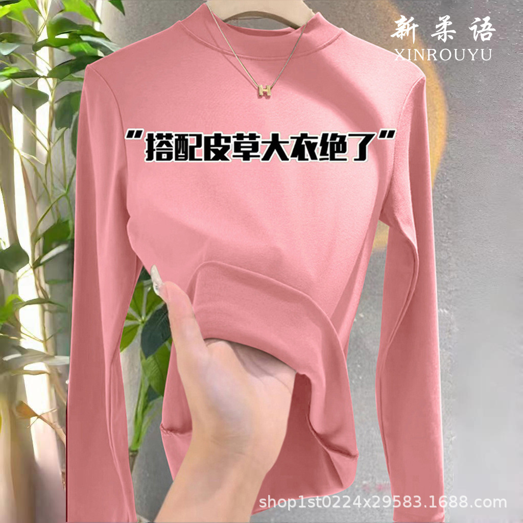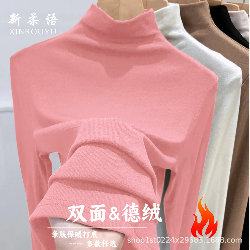 하프 하이 칼라 바닥 셔츠 여성의 가을과 겨울 새로운 외국 스타일의 벨벳 인테리어 디자인 틈새 슬리밍 올 매치 탑 인스토어 가기